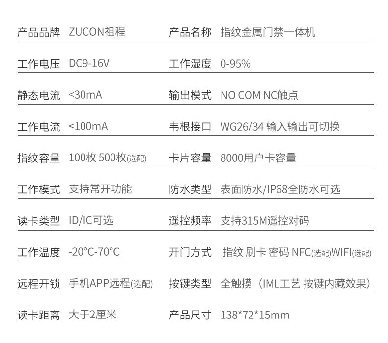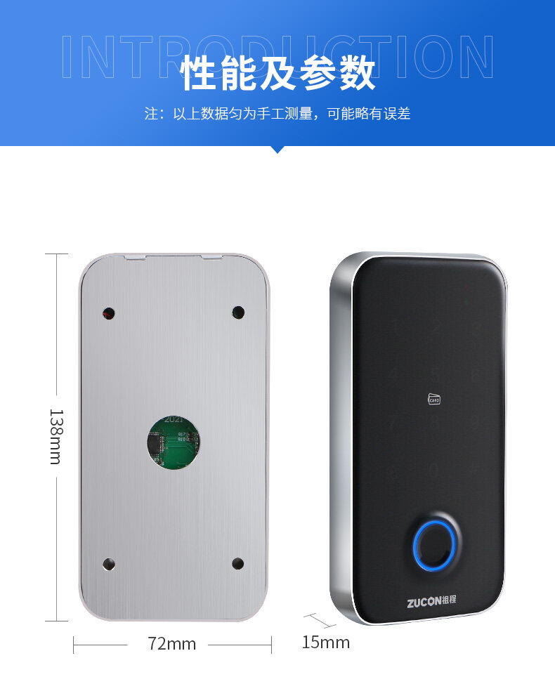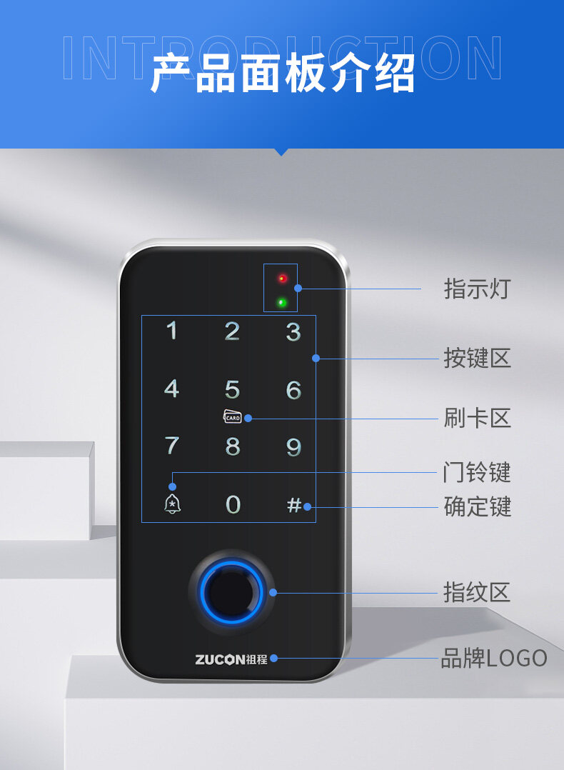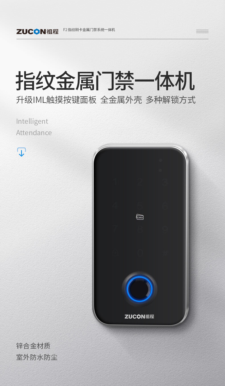 ZUCON祖程F2室外防水門(mén)禁系統(tǒng)一體機(jī)指紋鎖刷卡讀卡器主機(jī)IDIC讀頭