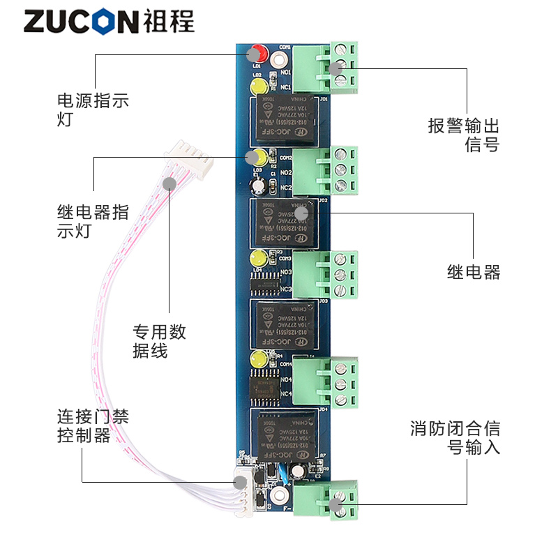 ZUCON祖程 門禁中性板消防及報警聯(lián)動擴展模塊連接控制板器主板配件