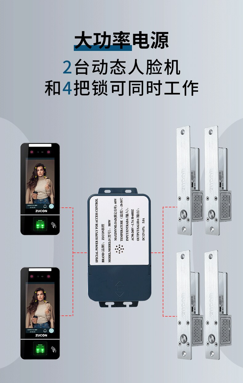 ZUCON祖程505W門禁系統(tǒng)開關電源12V3A5A控制器門禁套裝人臉控制電源