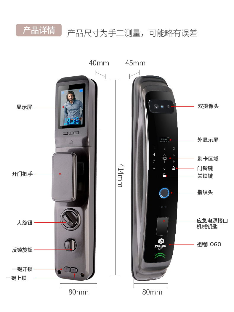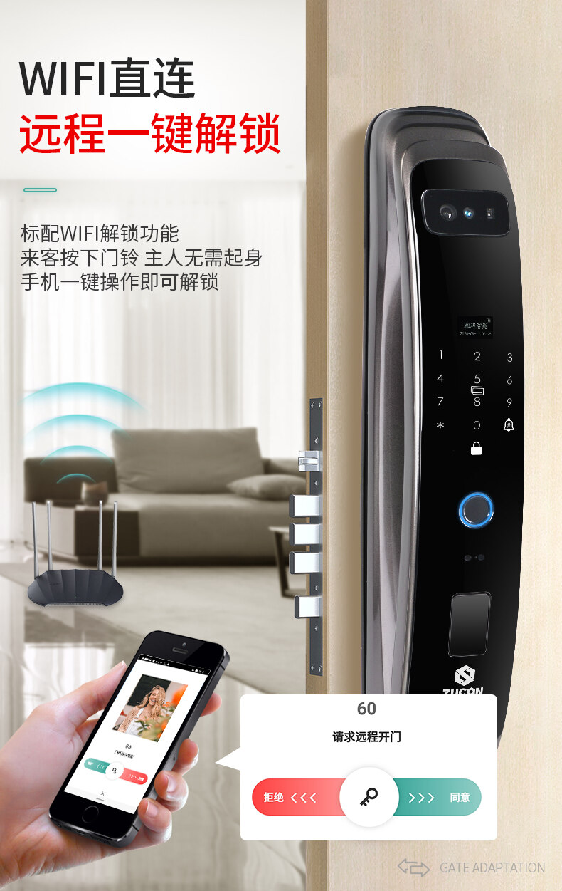 ZUCON祖程i9指紋鎖家用防盜門智能鎖電子貓眼密碼鎖wifi人臉識別門鎖