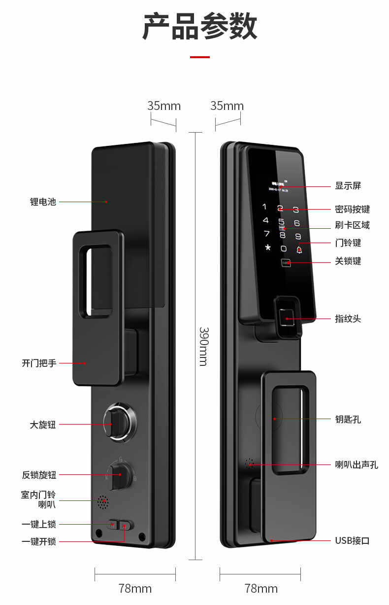ZUCUN祖程F892P指紋鎖家用防盜門智能電子門鎖密碼鎖手機app遠程開鎖