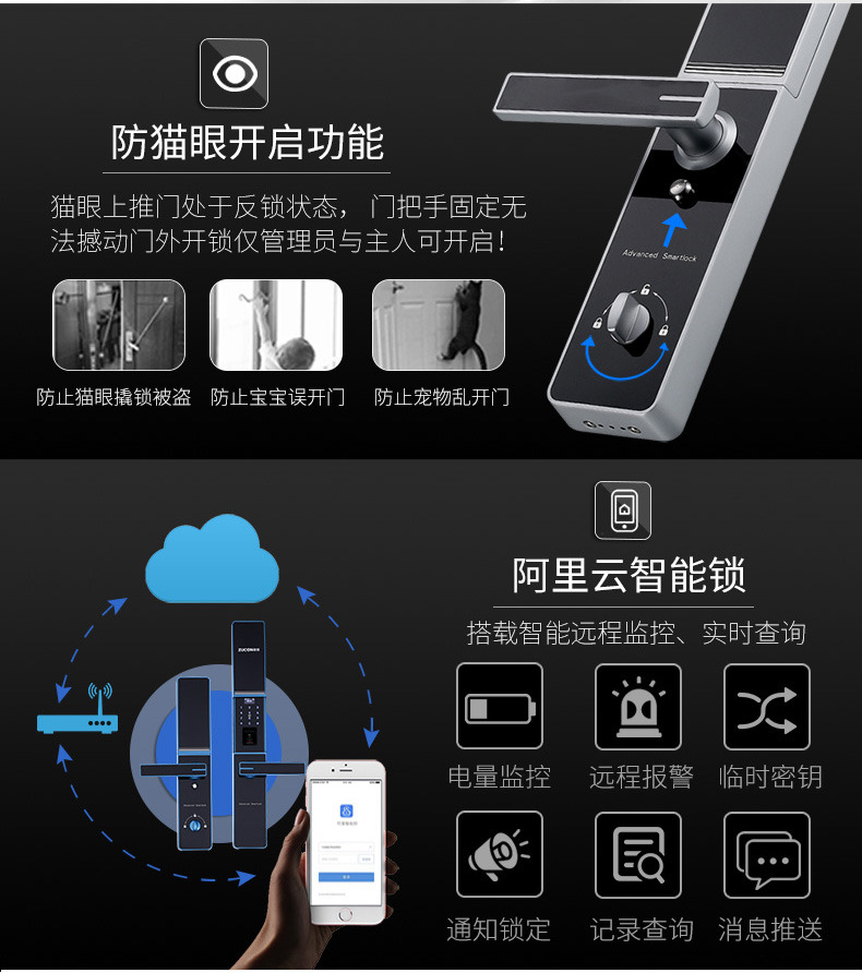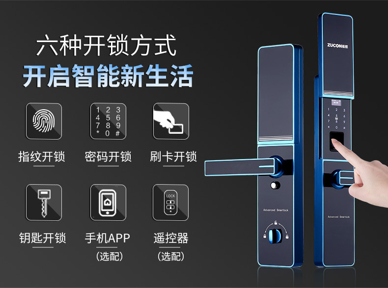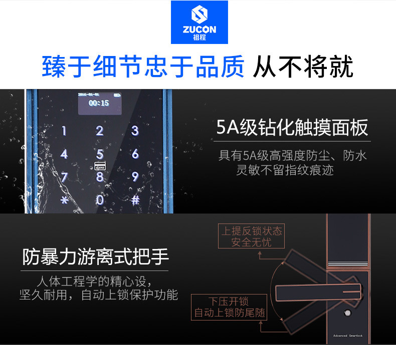 ZUCON祖程F890家用防盜門鎖智能指紋鎖密碼鎖感應(yīng)鎖智能刷卡電子鎖