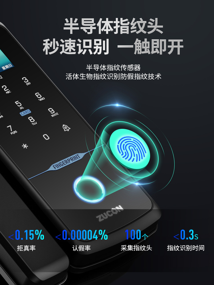 ZUCON祖程F352WIFI玻璃門指紋鎖免開孔辦公室智能電子密碼鎖單雙開門門禁鎖