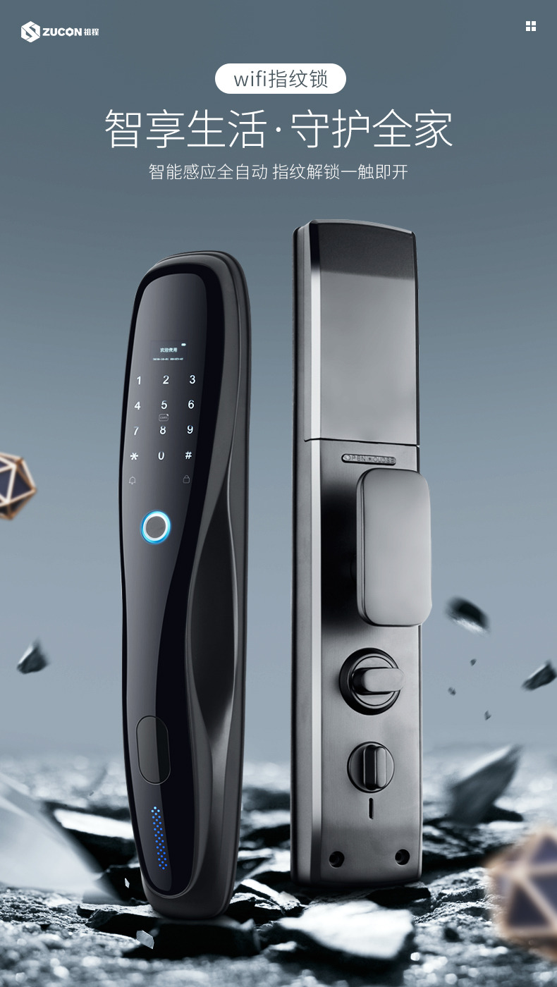ZUCON祖程F694指紋鎖家用防盜門智能電子門鎖密碼鎖手機wifi遠程開鎖