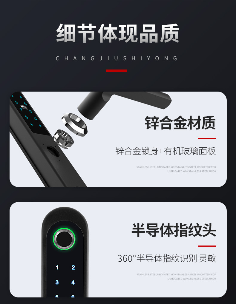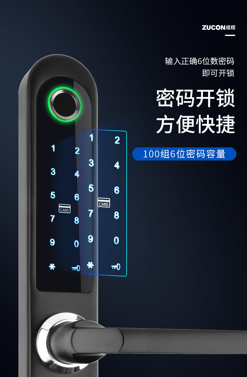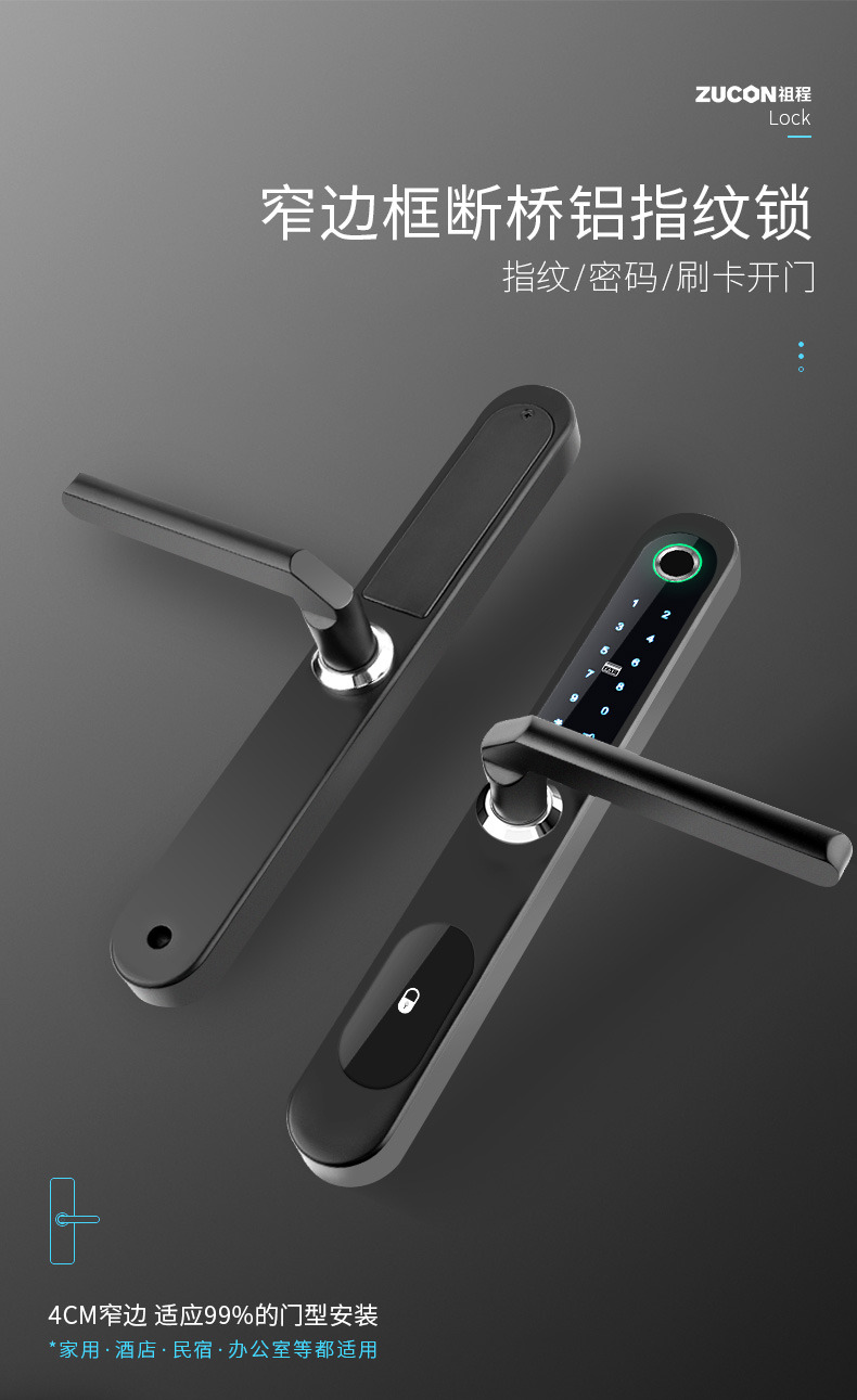 ZUCON斷橋鋁指紋鎖家用防盜門(mén)密碼鎖刷卡電子鎖智能門(mén)鎖十大品牌
