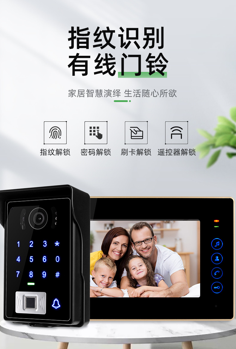 ZUCON祖程MF400別墅可視對(duì)講門鈴家用高清庭院門指紋防水室外電子貓眼