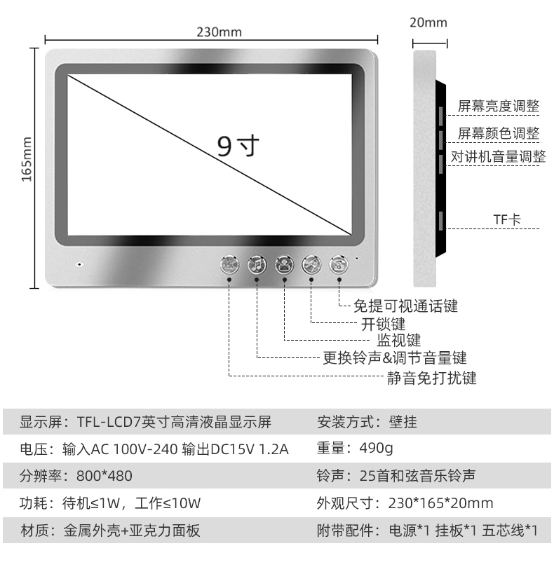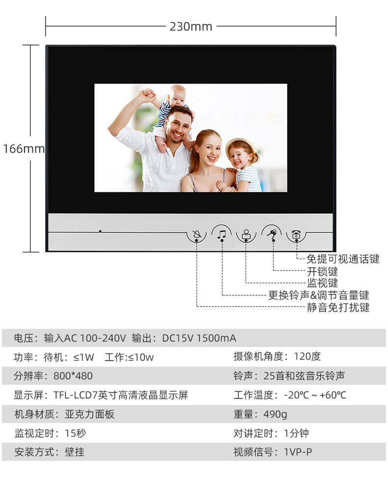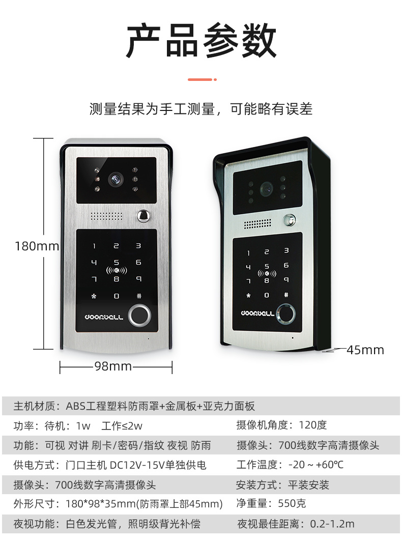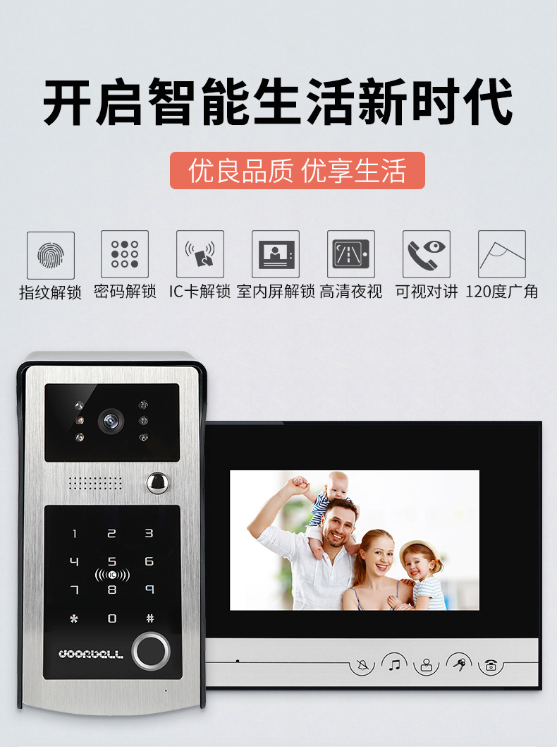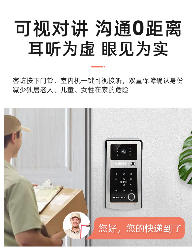 ZUCON祖程MF300樓宇可視對講門鈴家用別墅室內(nèi)機(jī)指紋防水室外電子貓眼