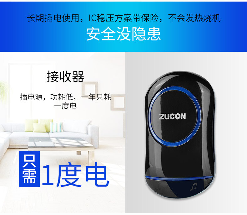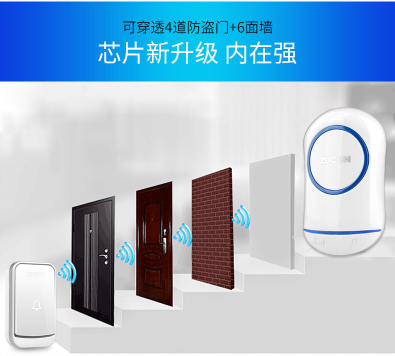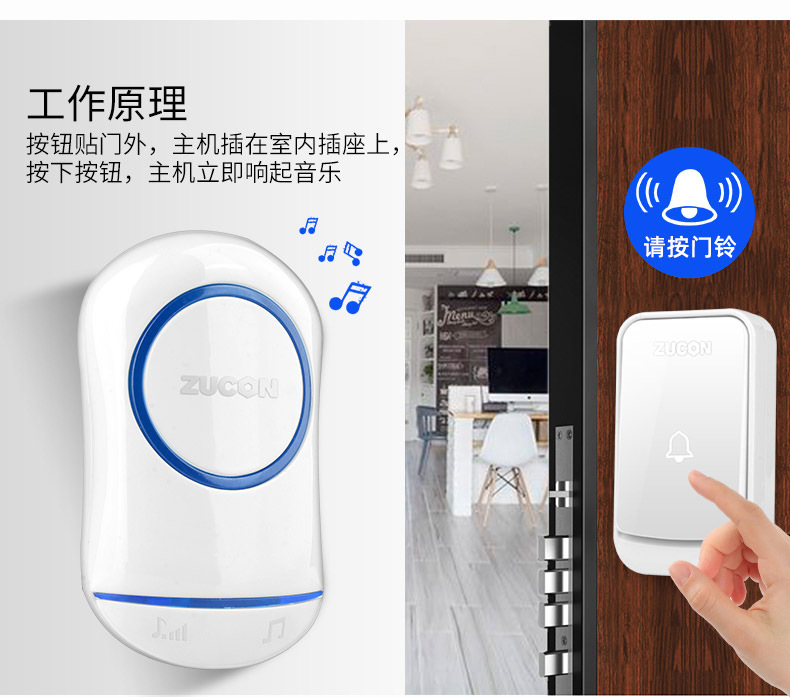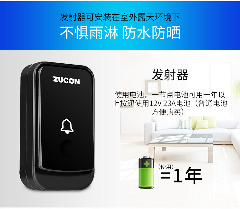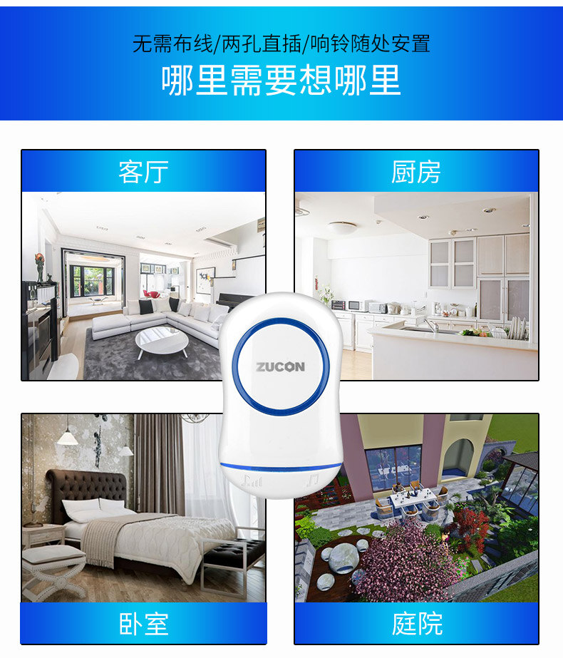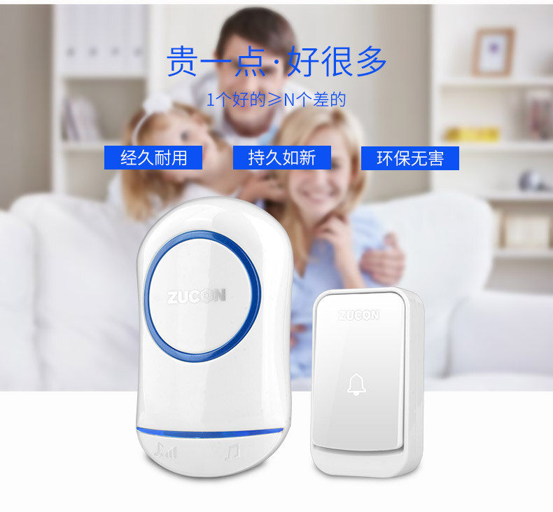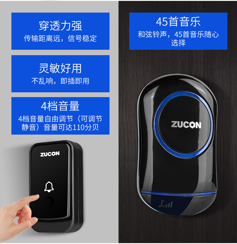 ZUCON祖程B17無線門鈴家用辦公室別墅遠(yuǎn)距離門鈴