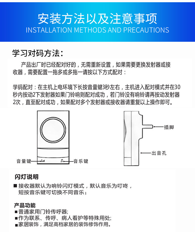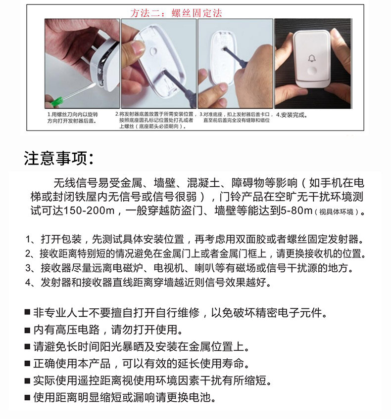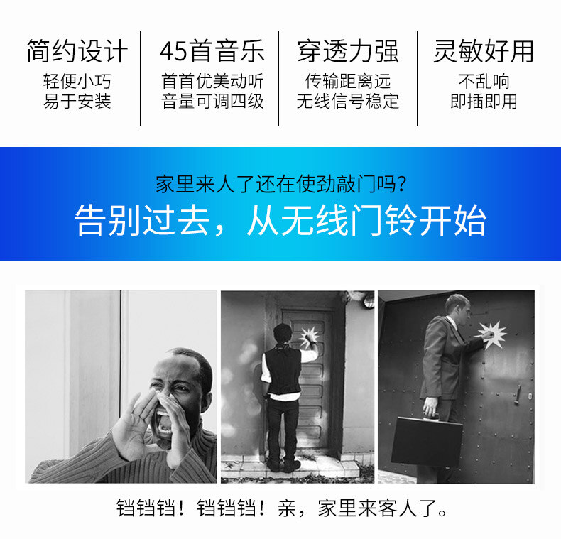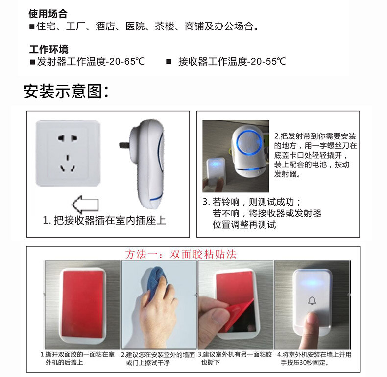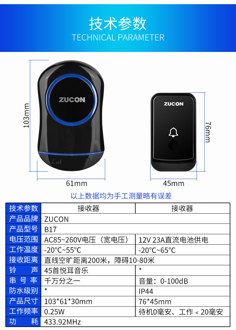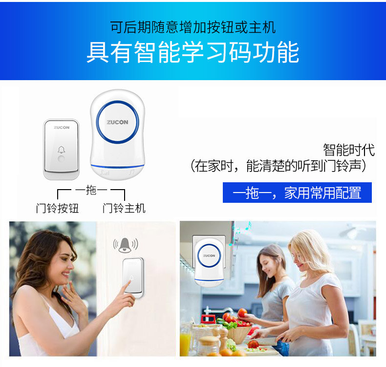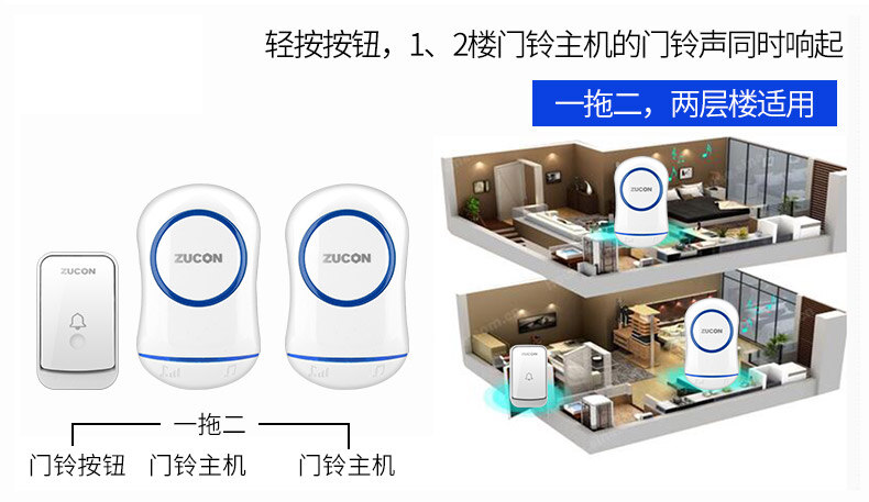 ZUCON祖程B17無線門鈴家用辦公室別墅遠(yuǎn)距離門鈴