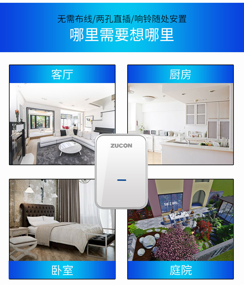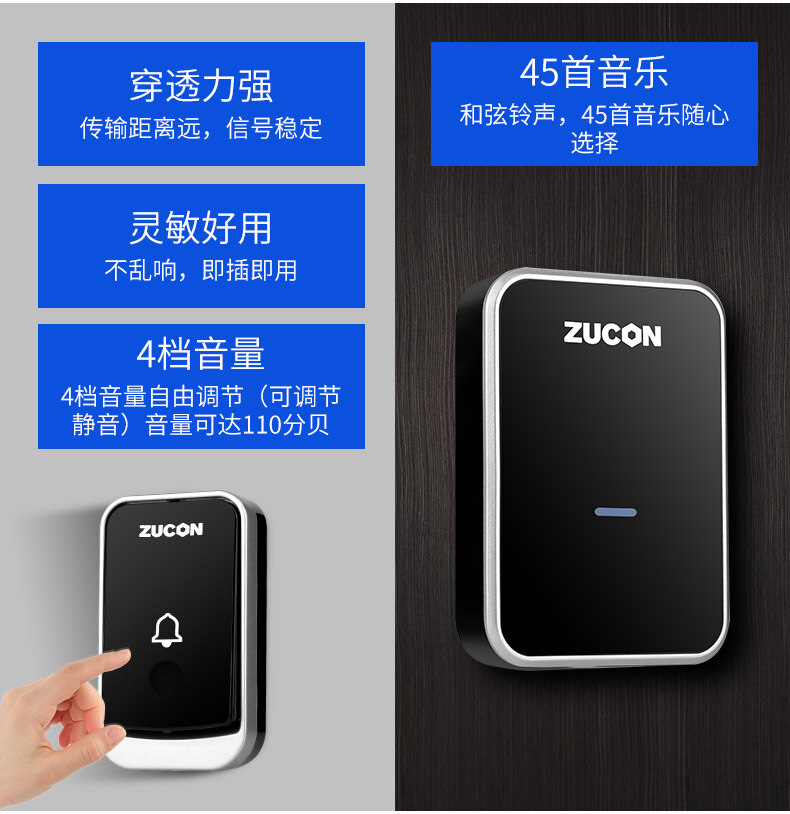 ZUCON祖程B16無線門鈴電子門鈴遠距離門鈴家用辦公室別墅