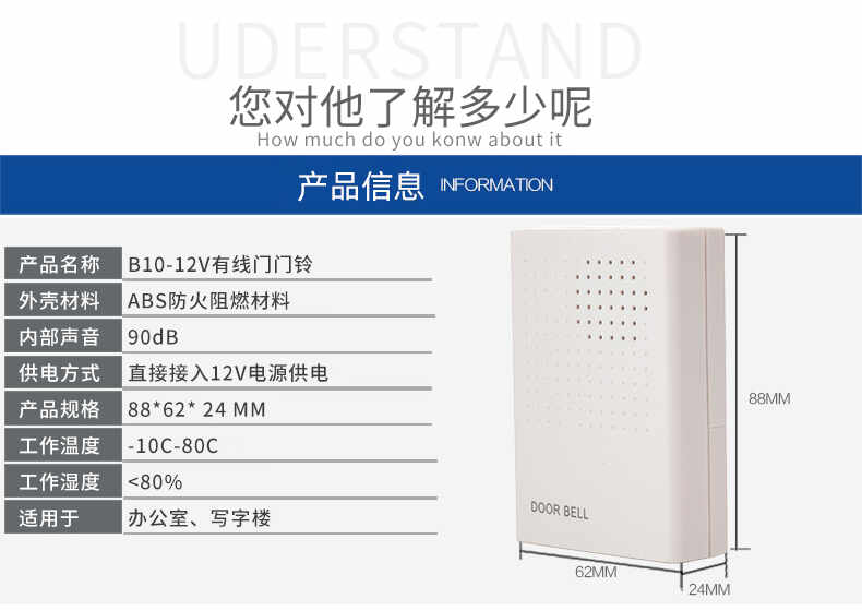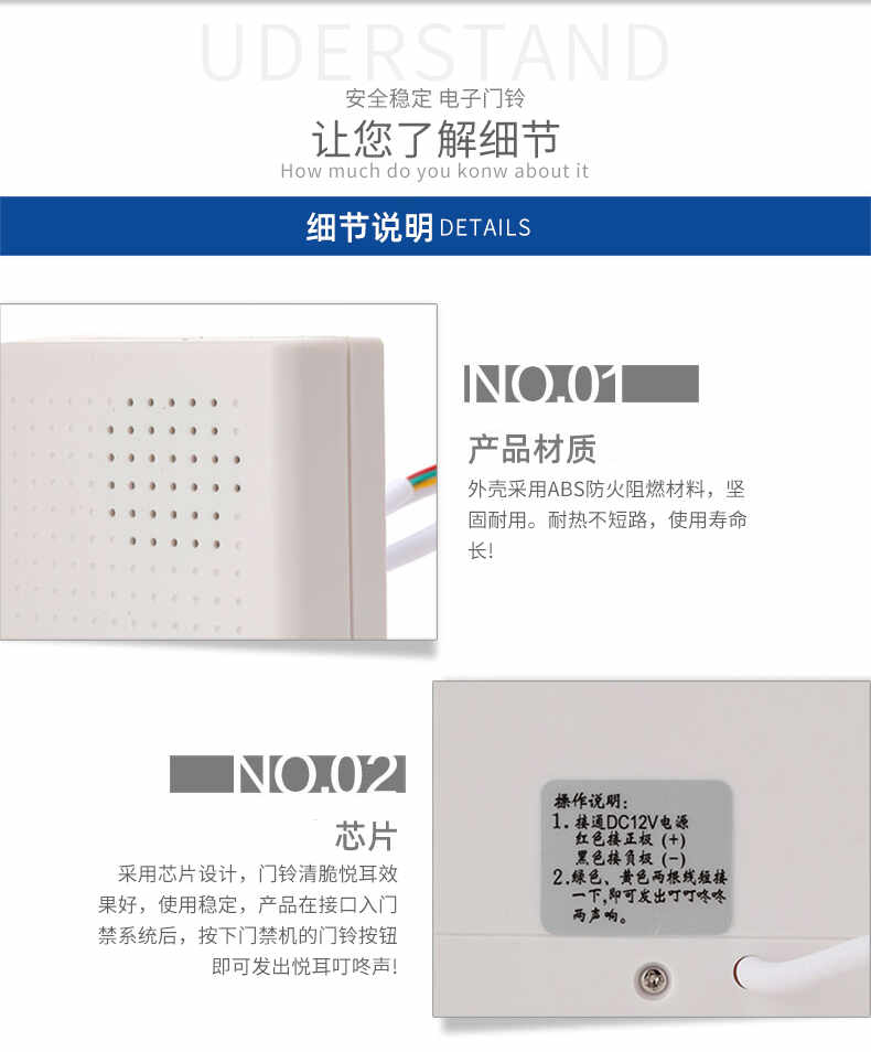 ZUCON祖程B10電子門(mén)鈴 門(mén)禁系統(tǒng)配套門(mén)鈴 12V電子門(mén)鈴 無(wú)需電池門(mén)鈴