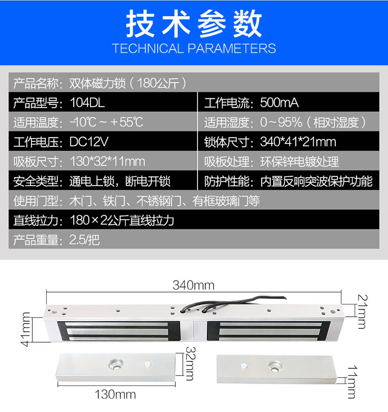 ZUCON祖程104D磁力鎖180kg門禁系統(tǒng)鎖