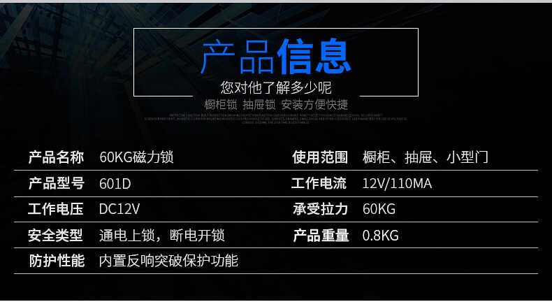 ZUCON祖程601D磁力鎖60公斤小型電子門禁鎖櫥柜鎖