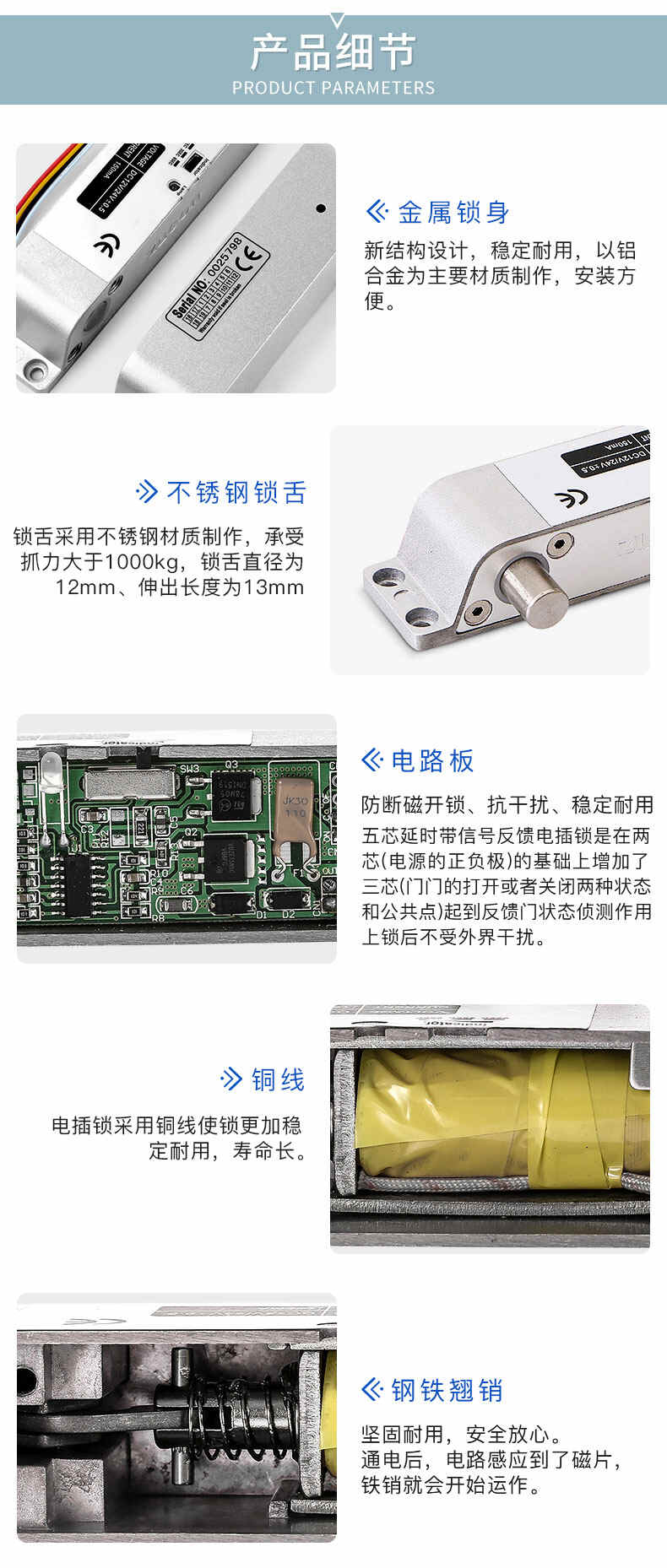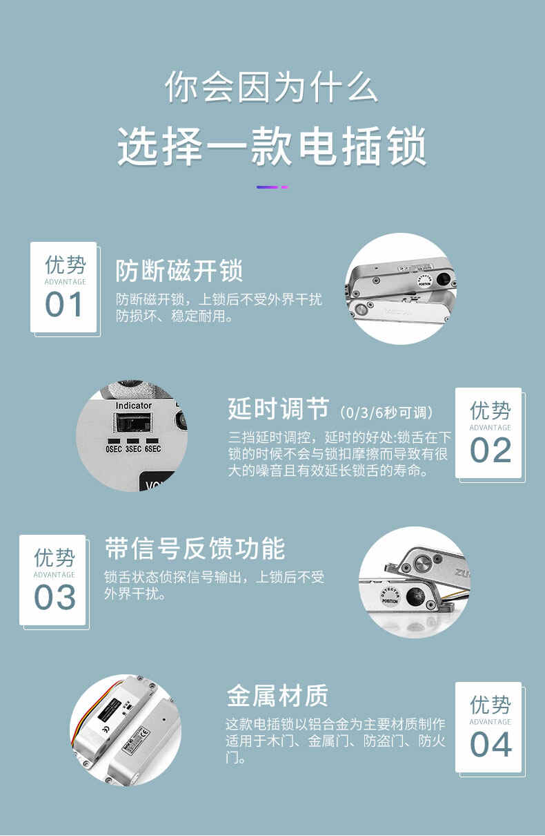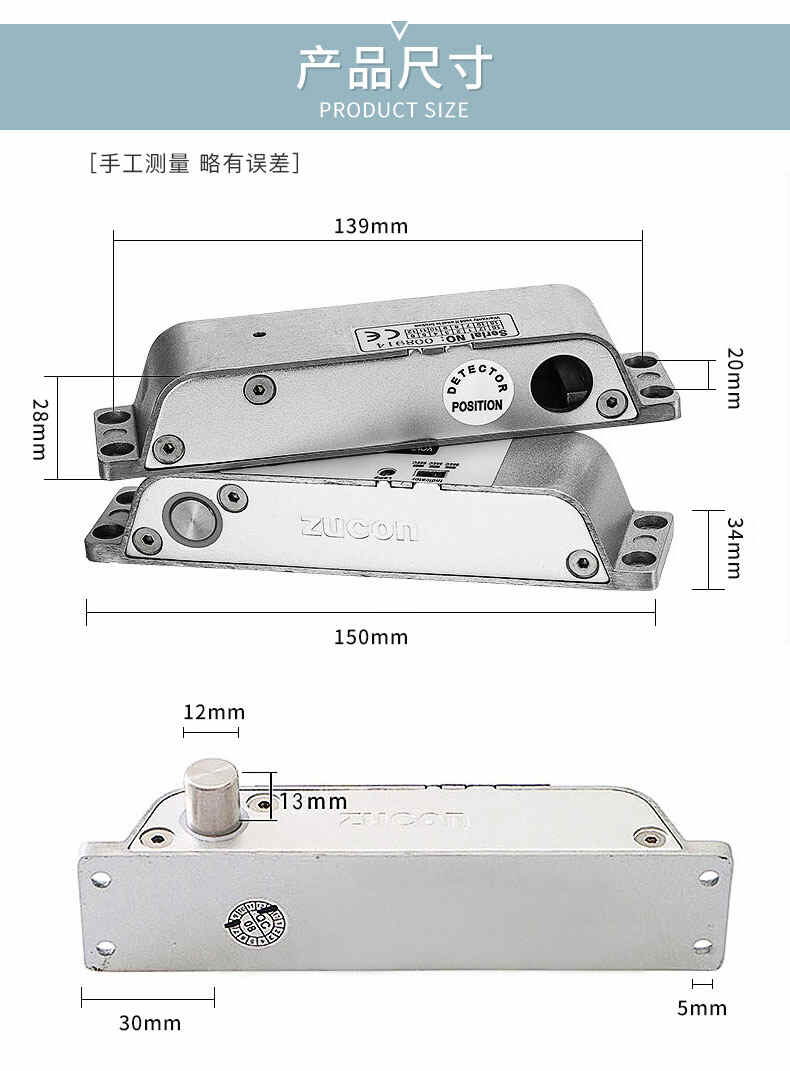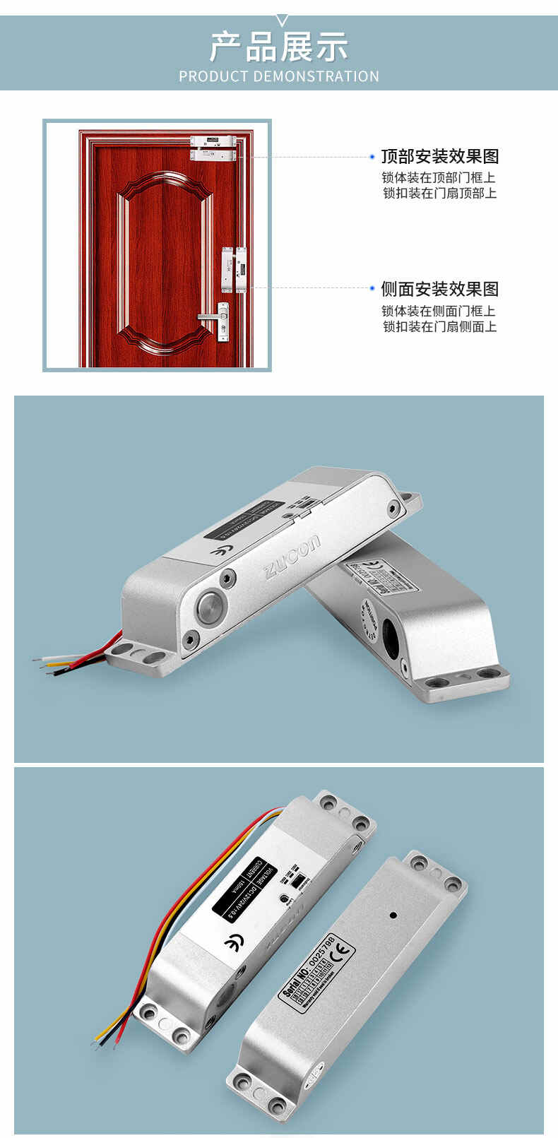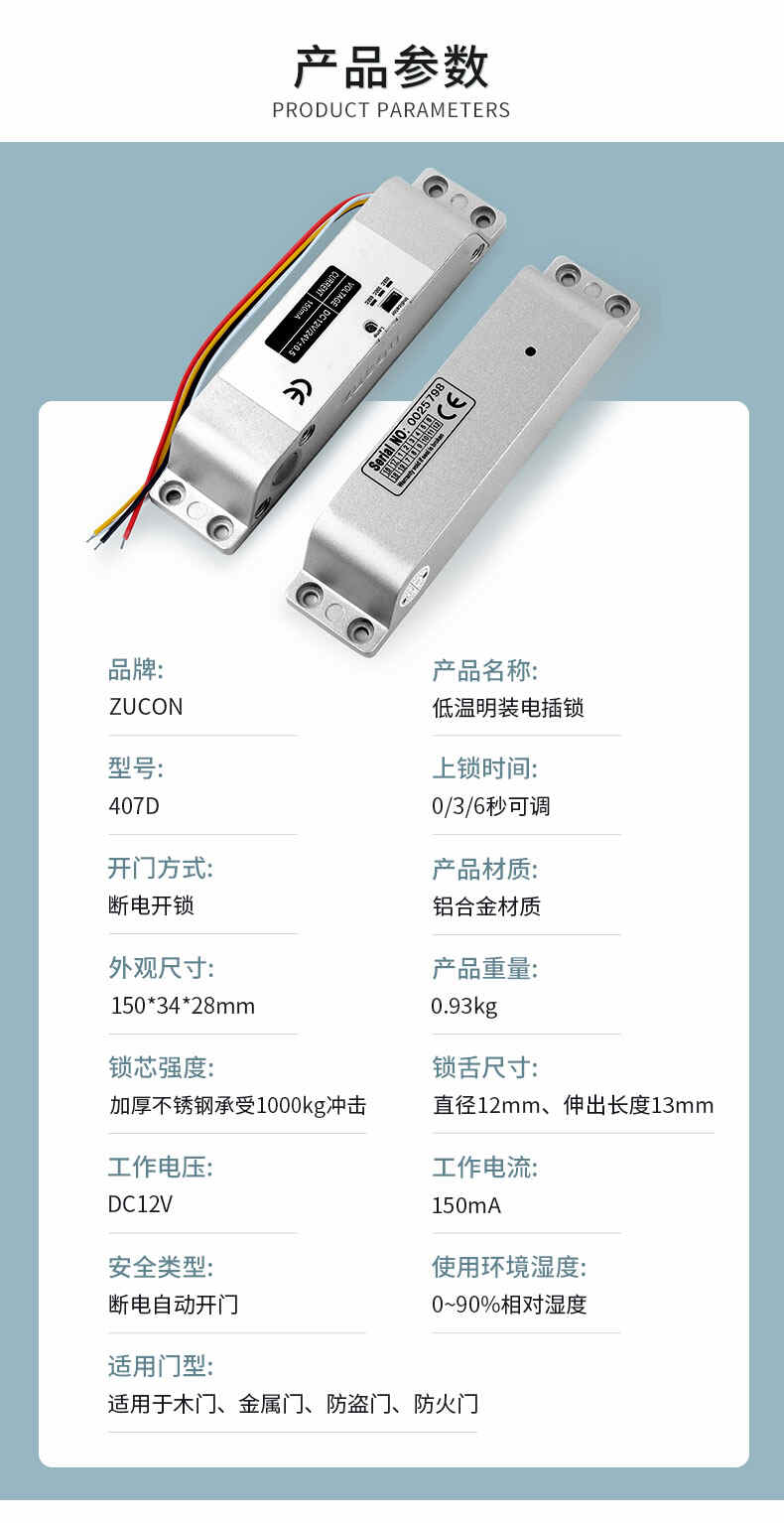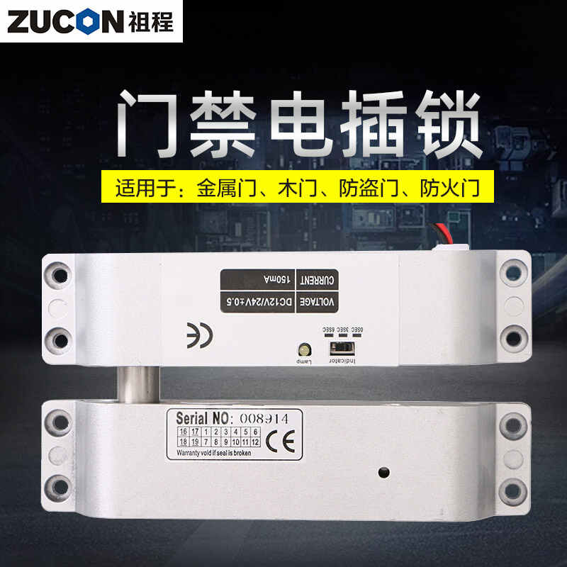 ZUCON祖程407D明裝電插鎖木門鐵門插銷鎖有框玻璃門禁系統(tǒng)斷電開