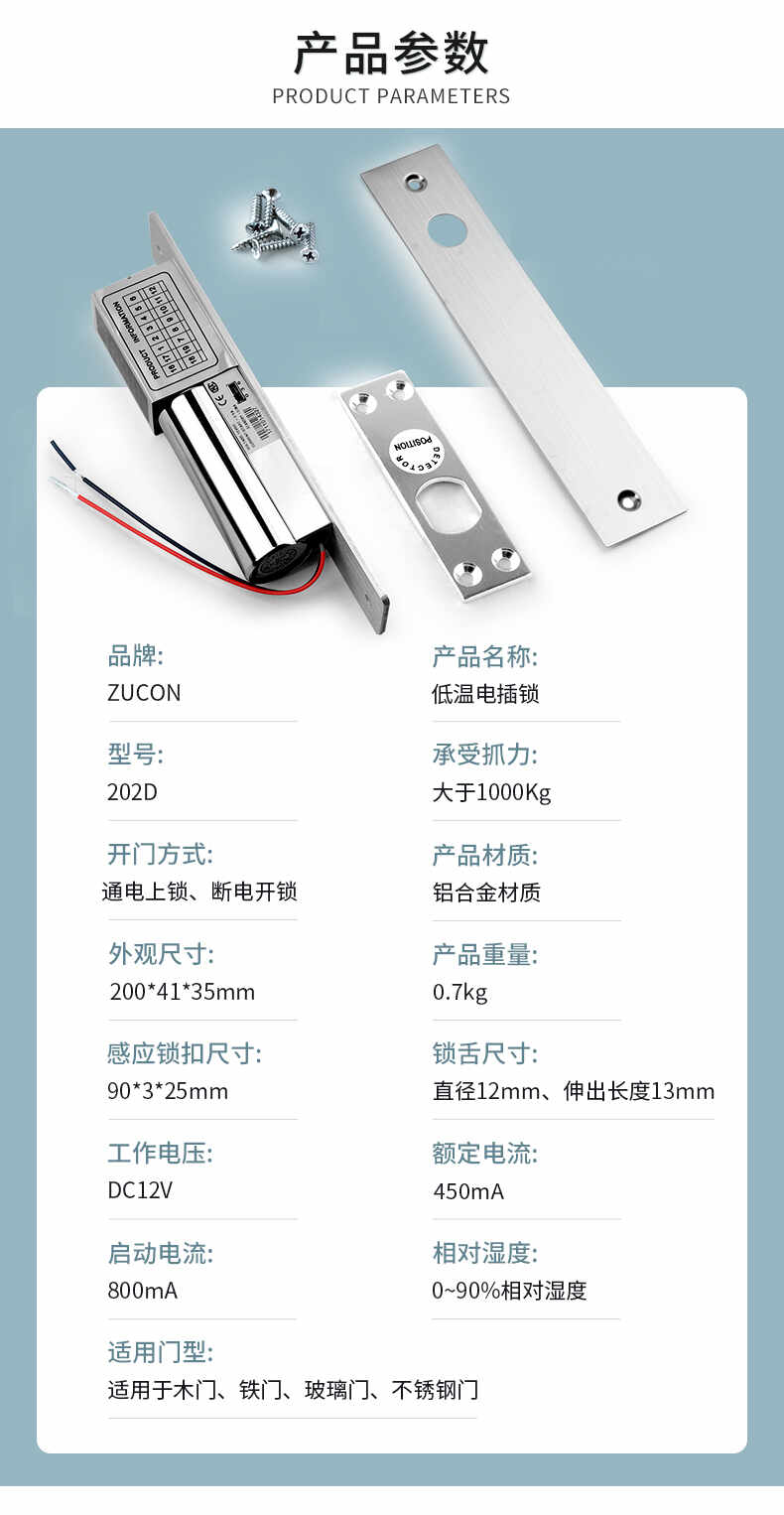 ZUCON祖程202D低溫延時電插鎖加強(qiáng)型電插鎖門禁配套電插鎖超低溫電鎖