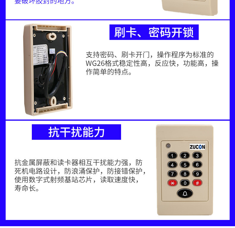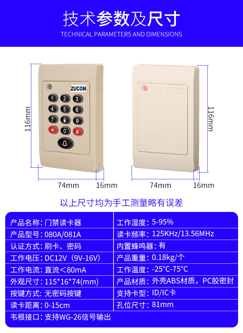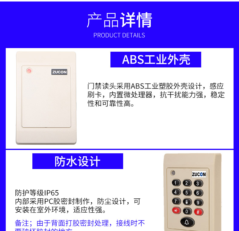 ZUCON祖程080A、081A門禁考勤讀卡器門禁讀頭IDIC卡刷卡機門禁刷卡器讀卡機白色
