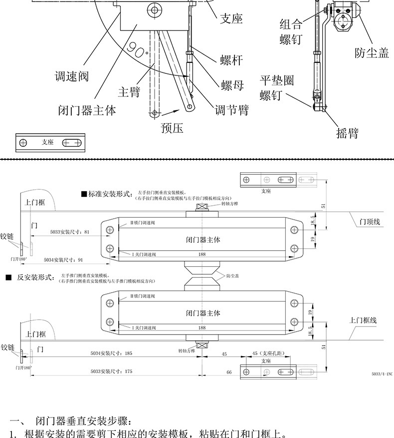 ZUCON祖程071A定位不定位閉門器液壓緩沖自動(dòng)關(guān)門器家用門防火門65-85KG