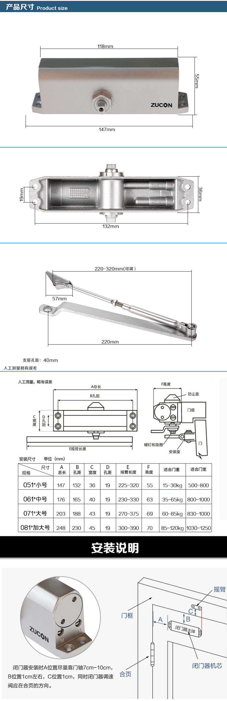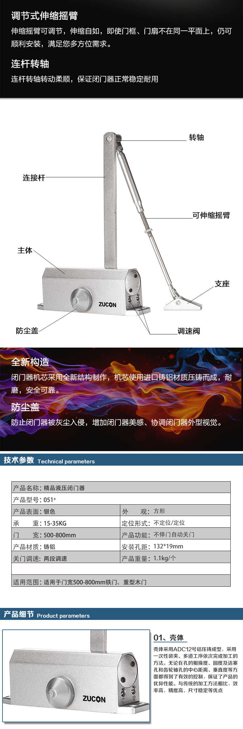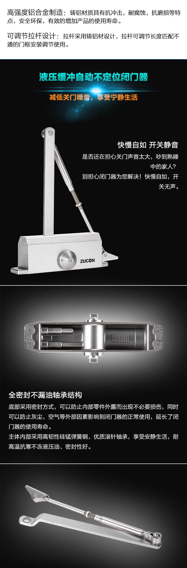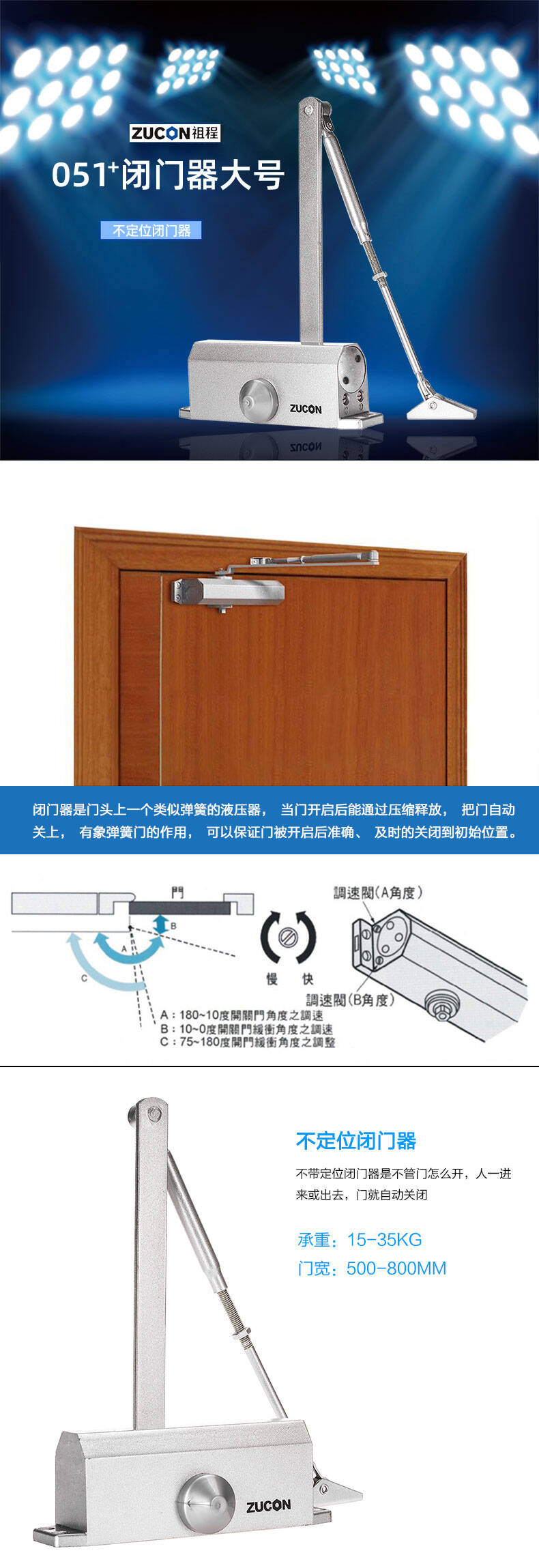 ZUCON祖程051+液壓閉門器小號(hào)自動(dòng)關(guān)門器門禁閉門器定位不定位