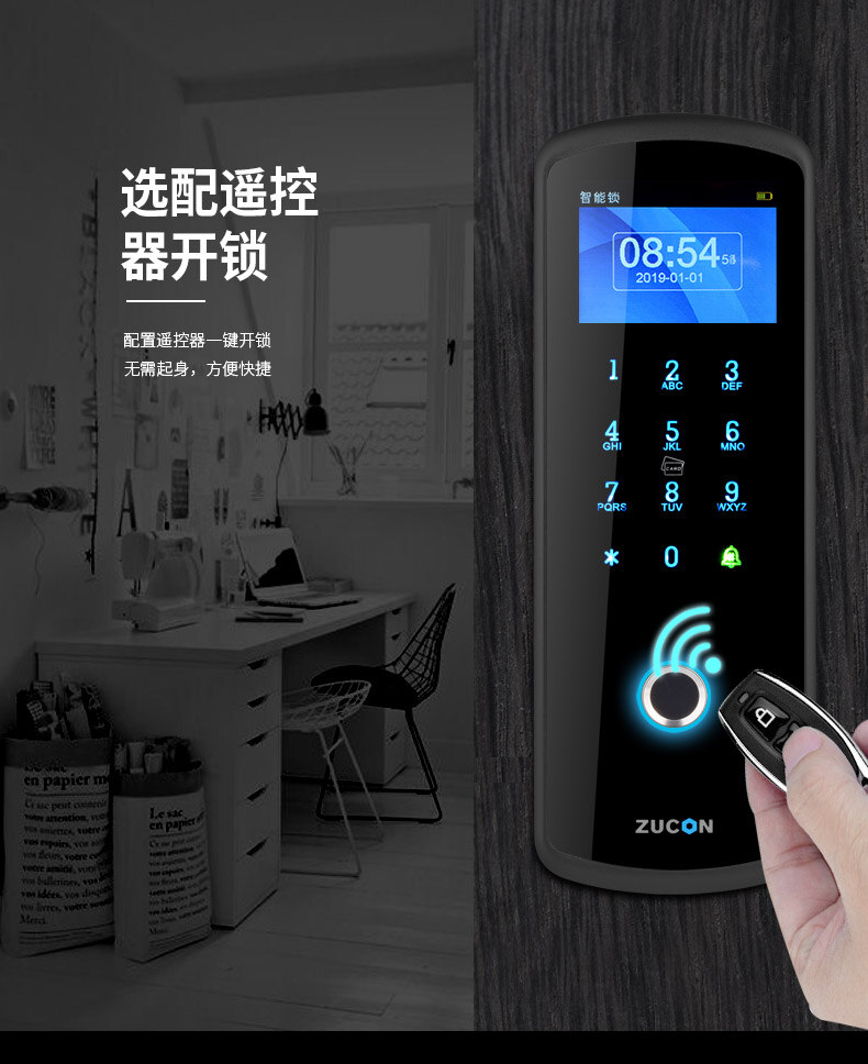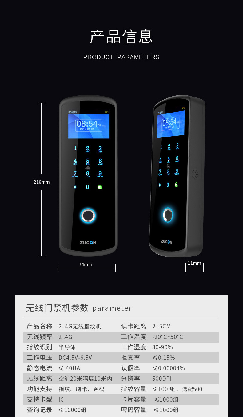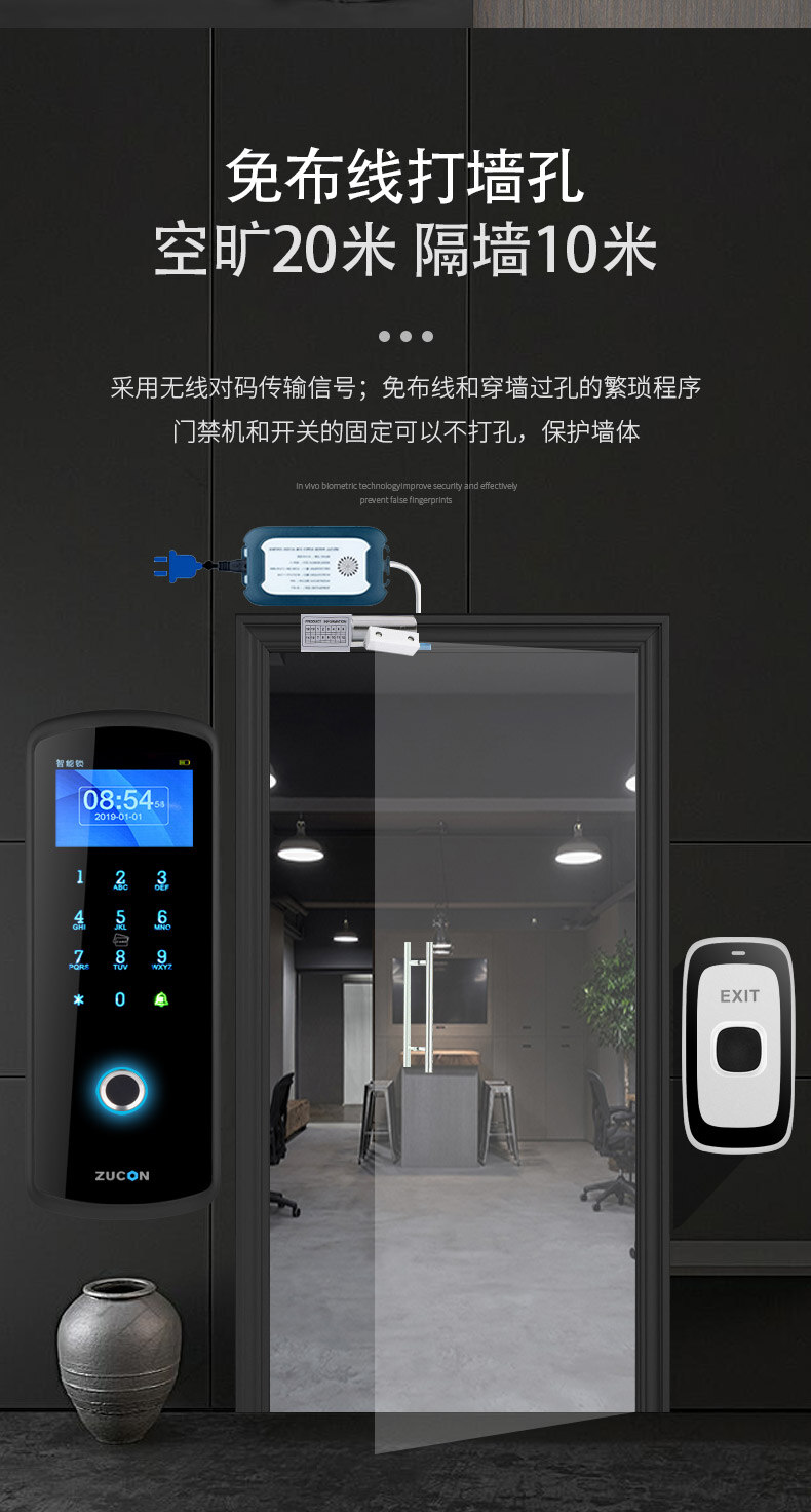 ZUCON祖程F23無(wú)線門(mén)禁鎖免布線指紋門(mén)禁系統(tǒng)一體機(jī)門(mén)禁套裝玻璃門(mén)禁鎖