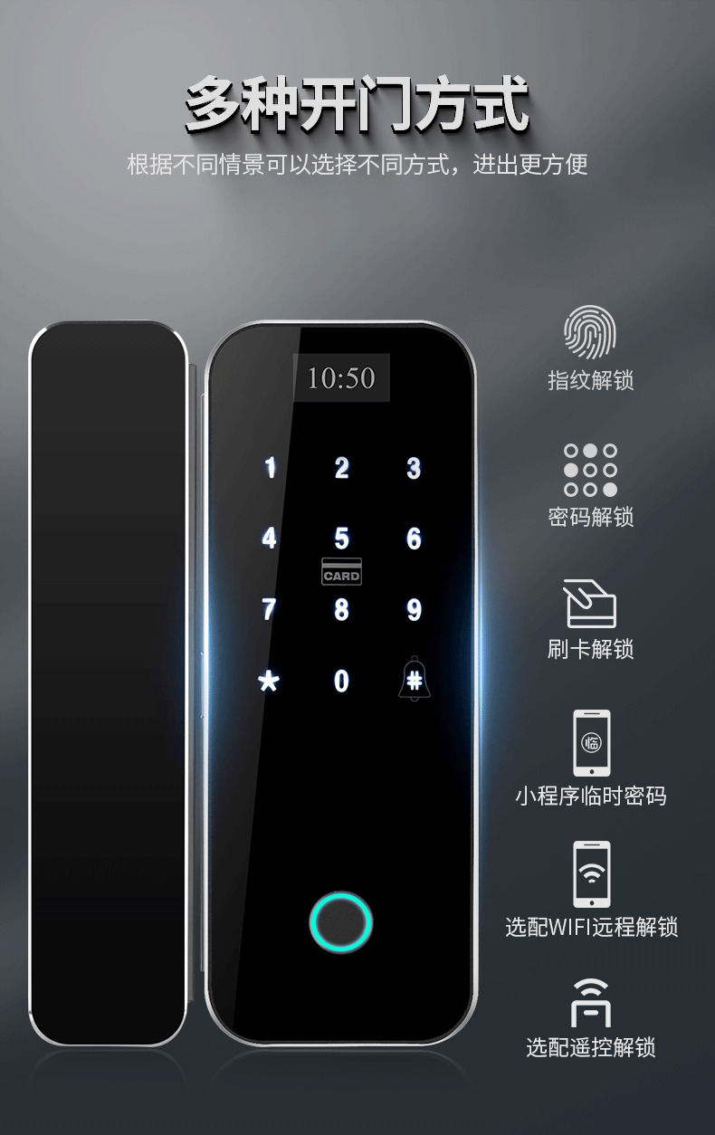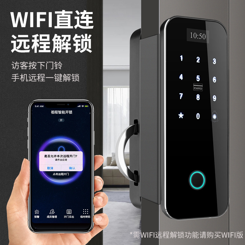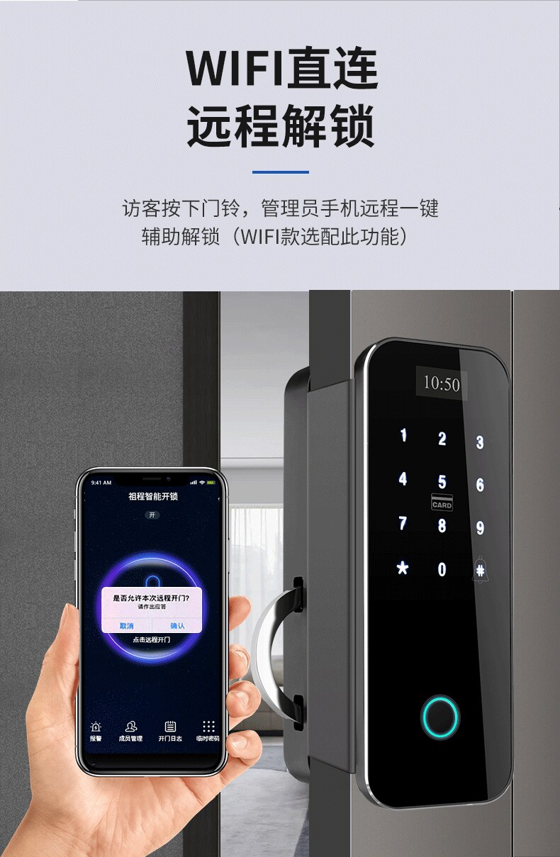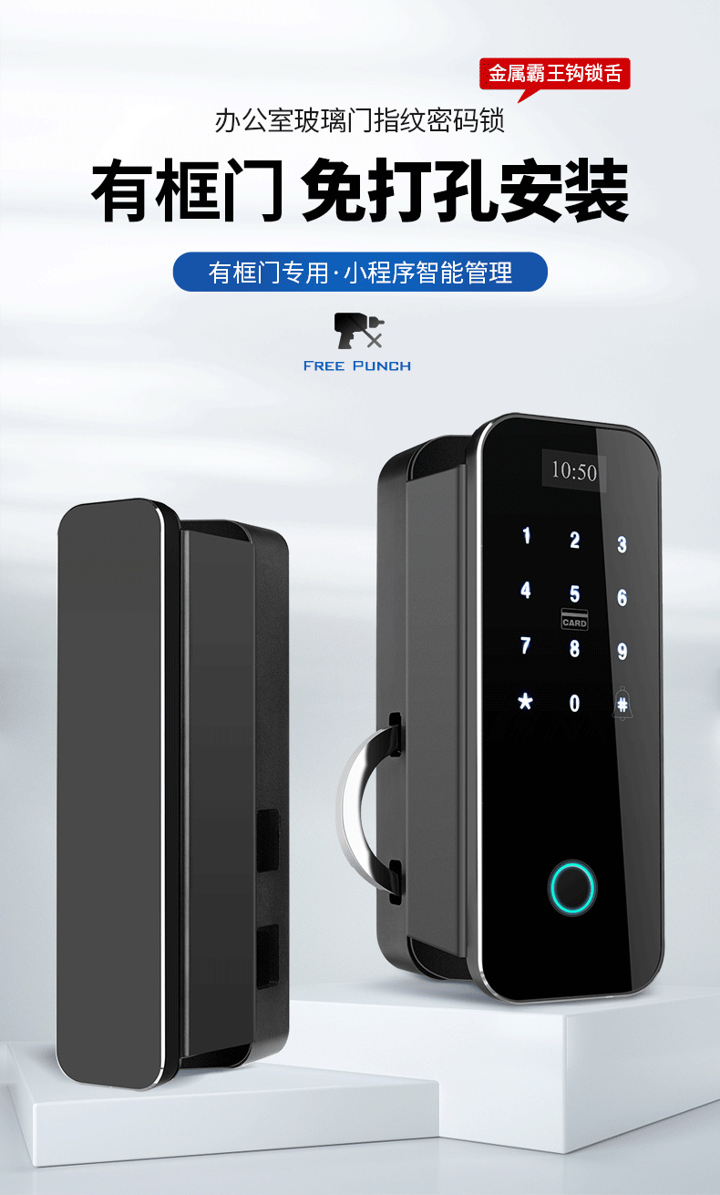 ZUCON祖程F491有框玻璃門指紋鎖雙門電子鎖密碼鎖雙開商鋪智能鎖免開孔
