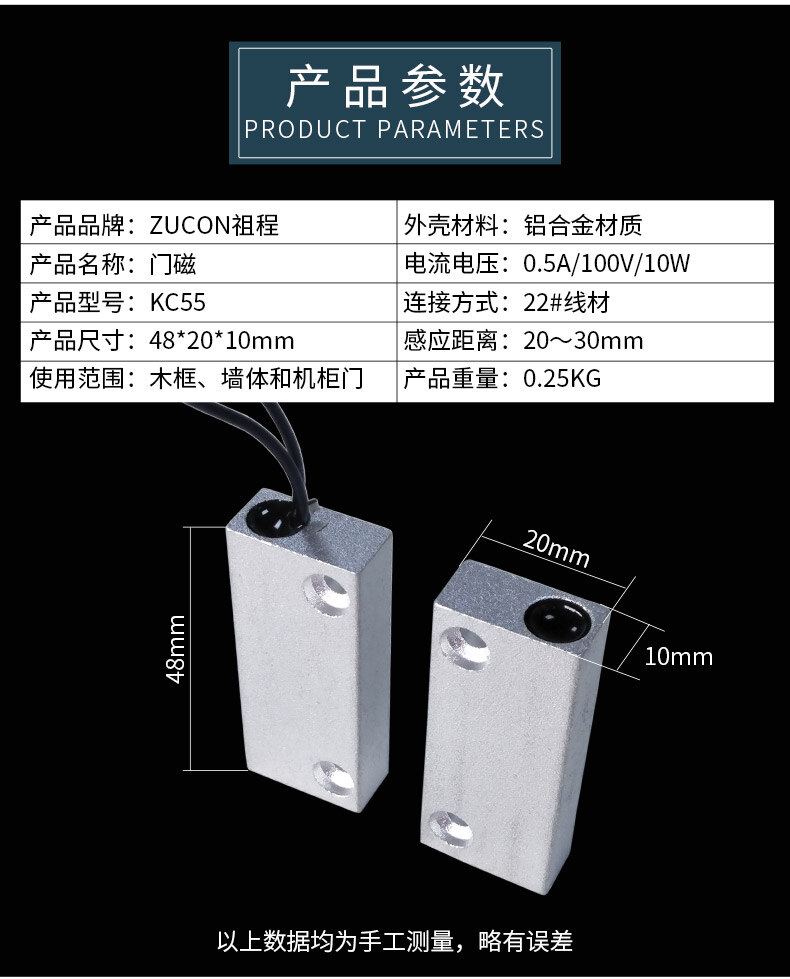 ZUCON祖程KC55門(mén)磁 有線(xiàn)門(mén)磁 門(mén)磁開(kāi)關(guān) 鋁合金外殼磁石吸力強(qiáng)