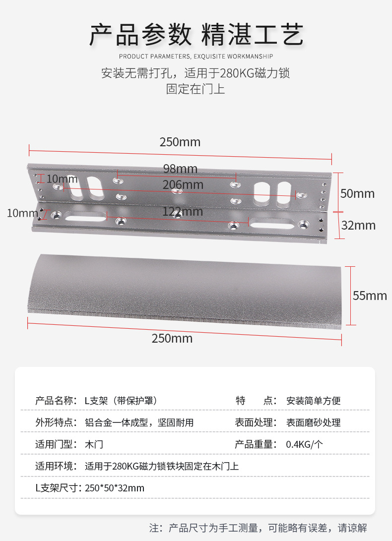 ZUCON祖程磁力鎖支架 280公斤磁力鎖L型支架 帶保護罩 配套支架