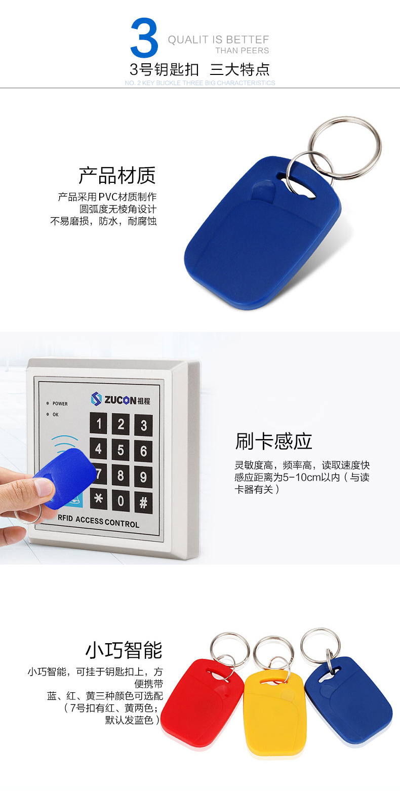 ZUCON祖程1號鑰匙卡扣1號掛扣ID、IC感應扣門禁考勤扣小卡扣異形卡