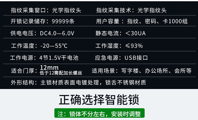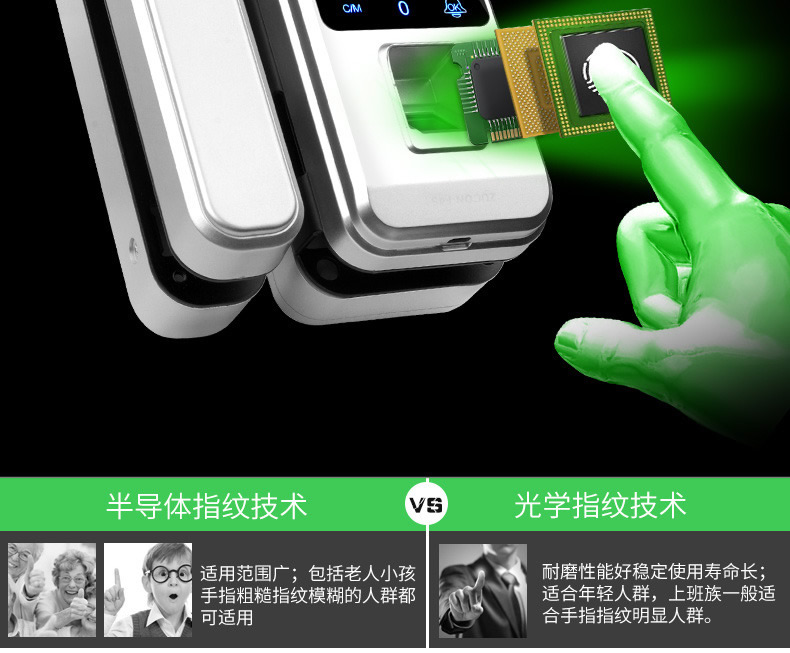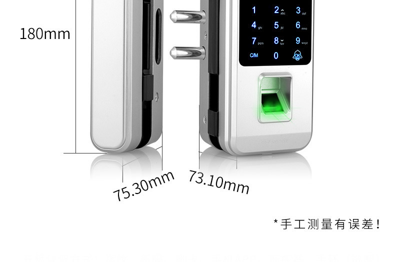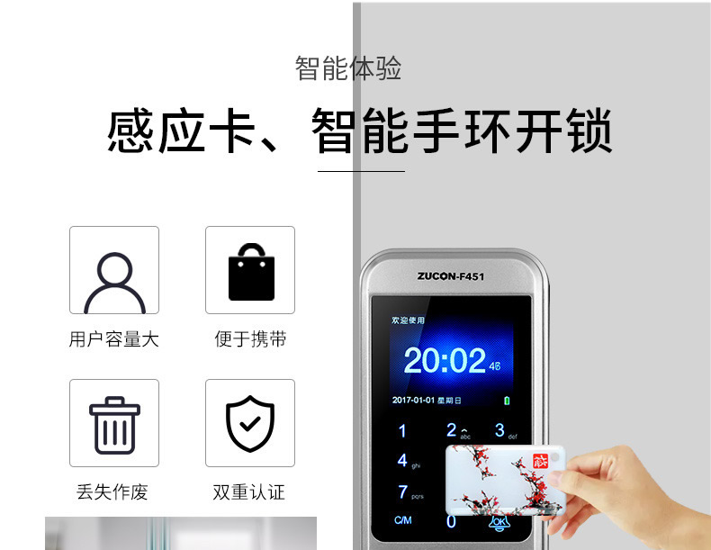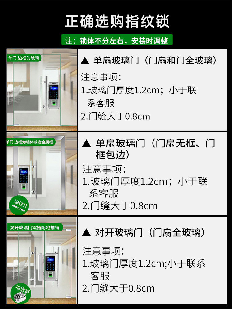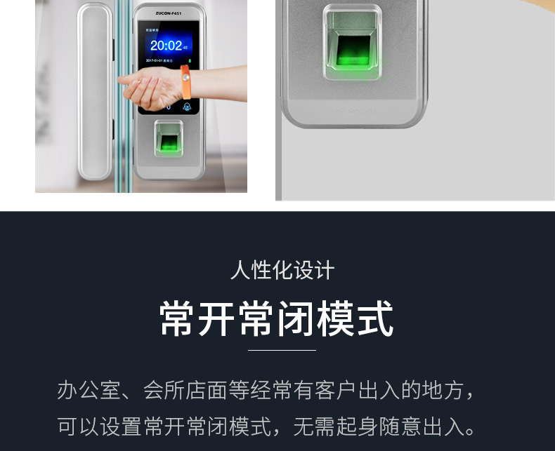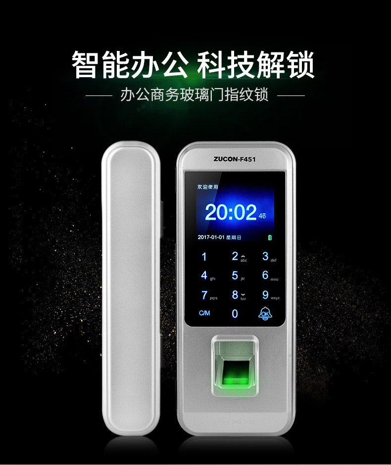 ZUCON祖程F451玻璃門指紋鎖免開孔雙門辦公室考勤電子智能門鎖密碼鎖