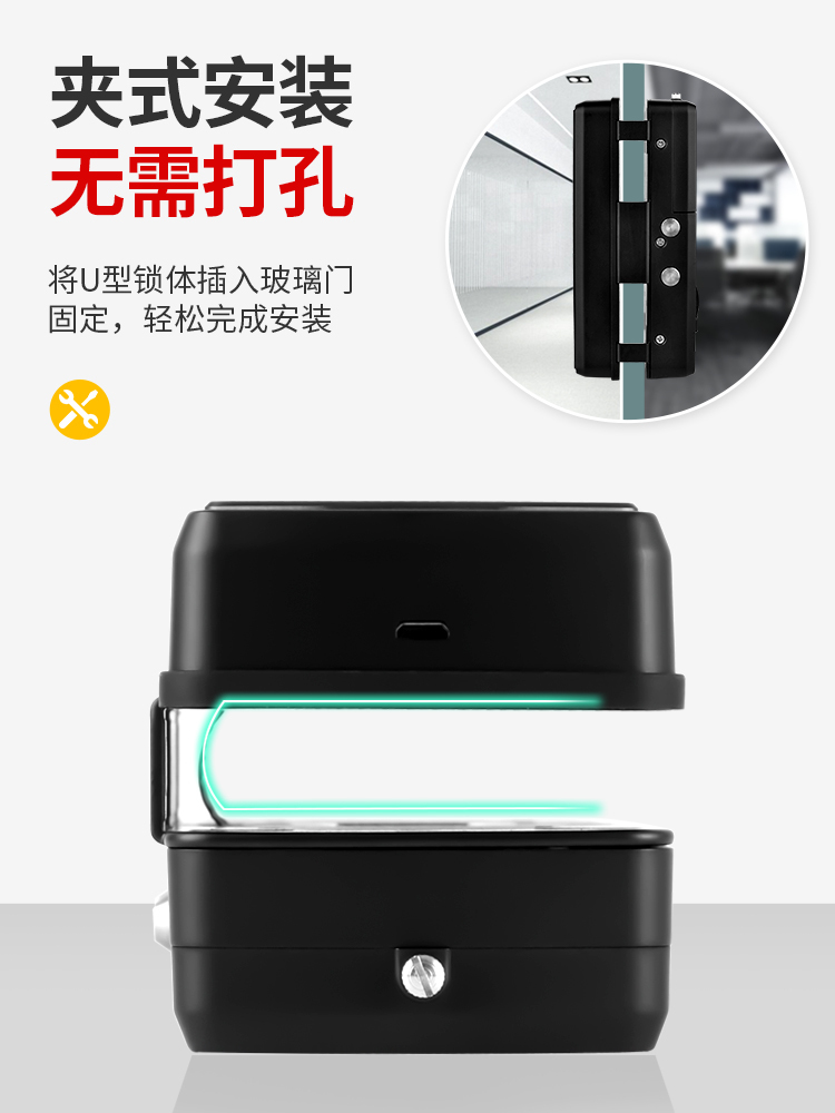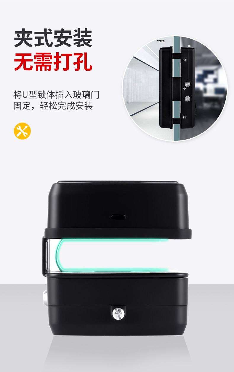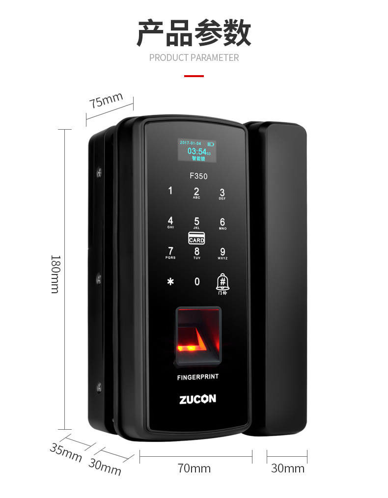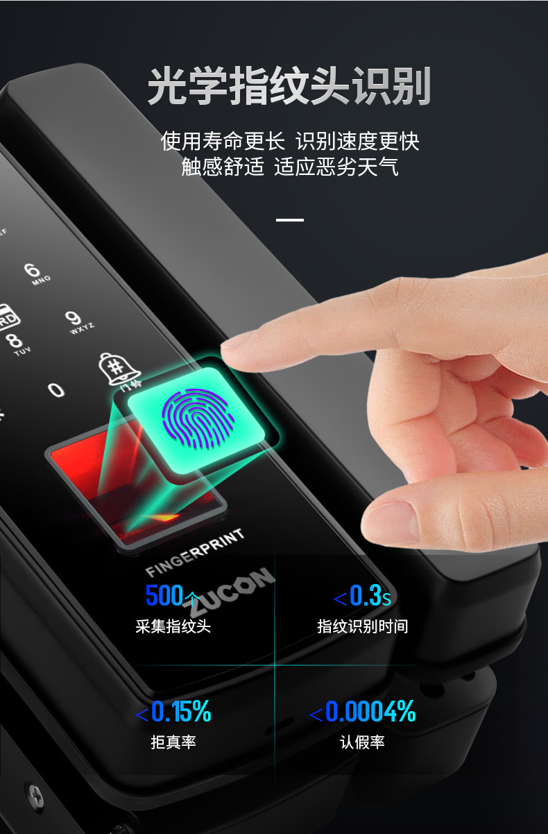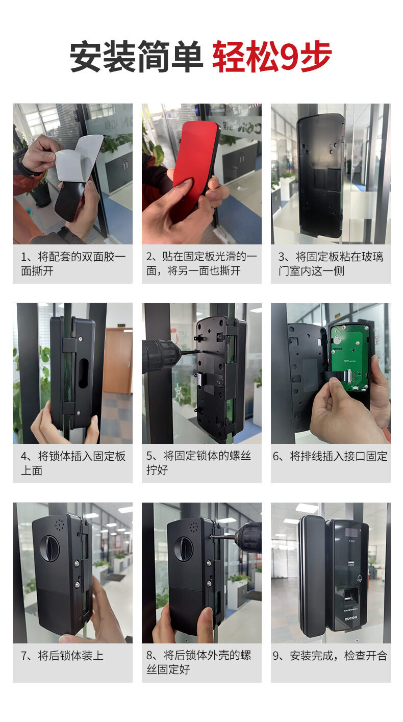 ZUCON祖程F350玻璃門指紋鎖免開(kāi)孔辦公室密碼鎖商鋪門鎖雙門有框智能電子門禁鎖