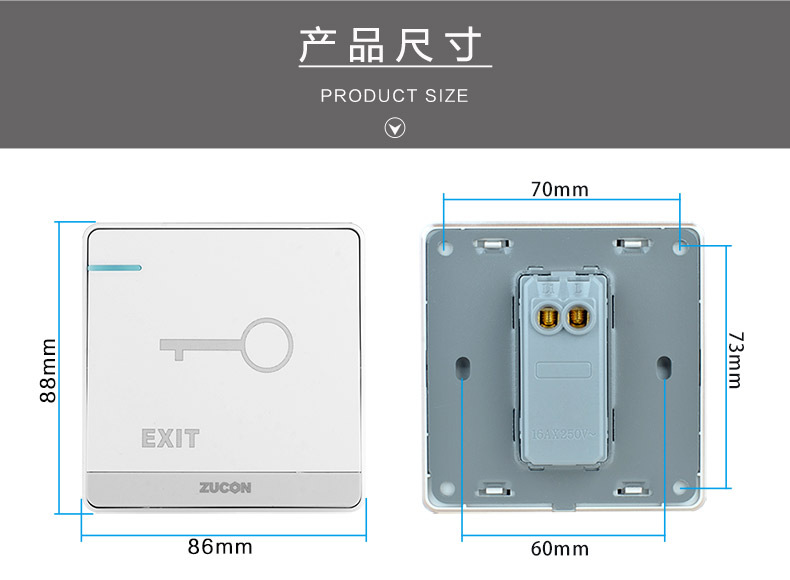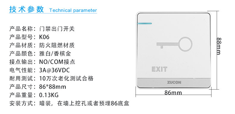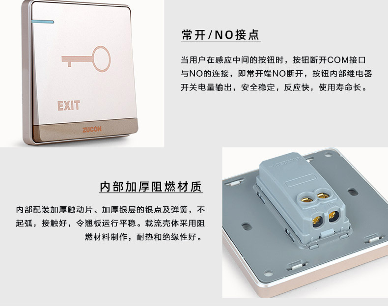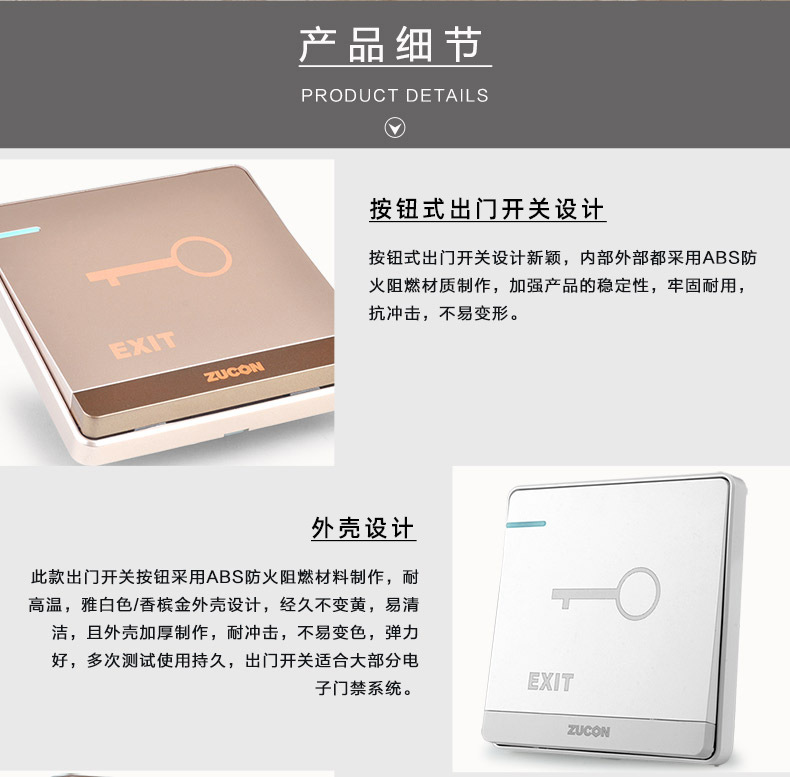 ZUCON祖程K06大面板 電子門禁開關門鎖開關出門按鈕 雅白香檳金兩色