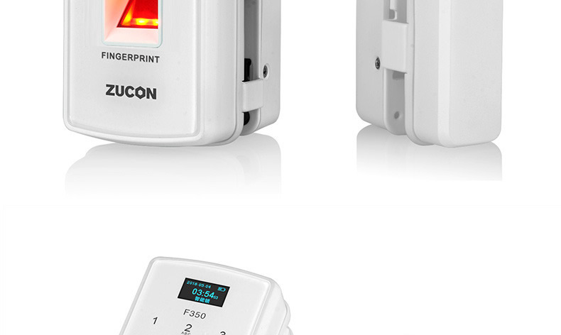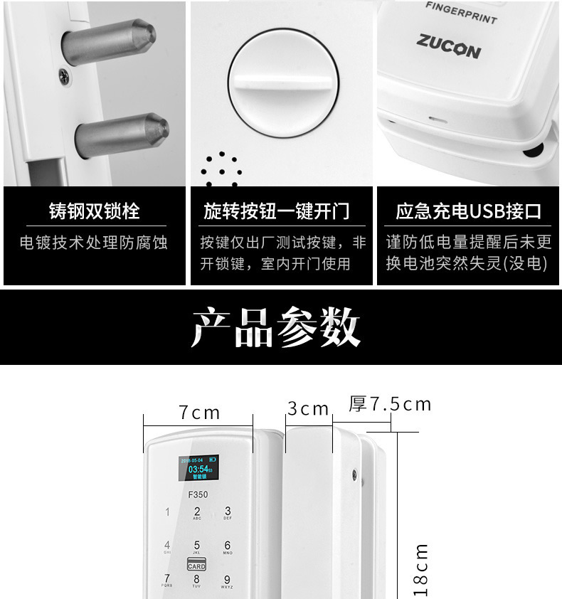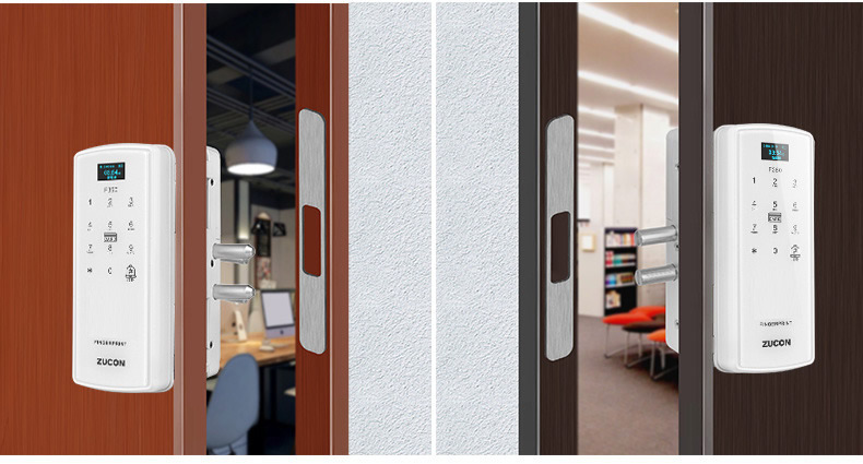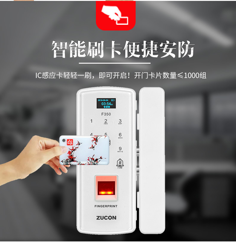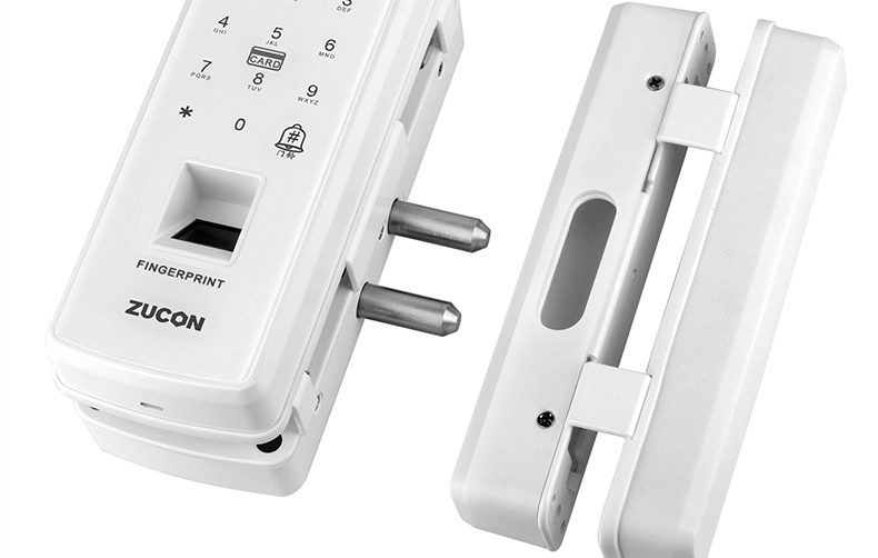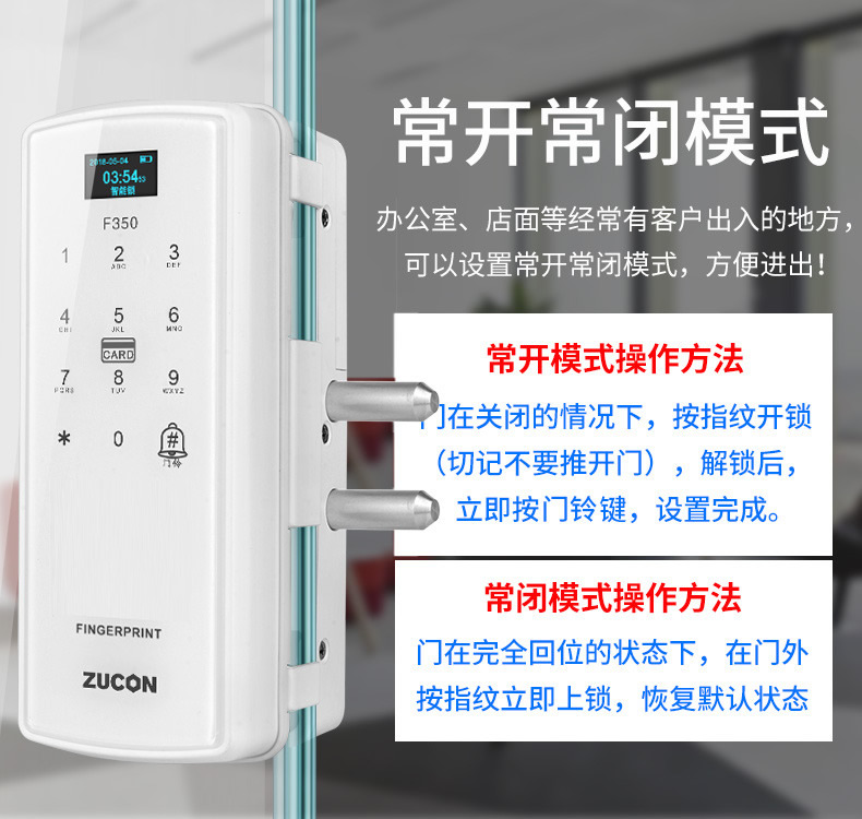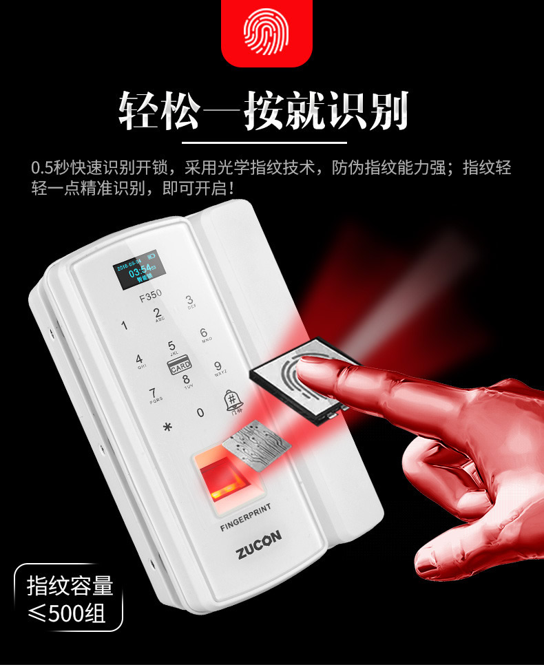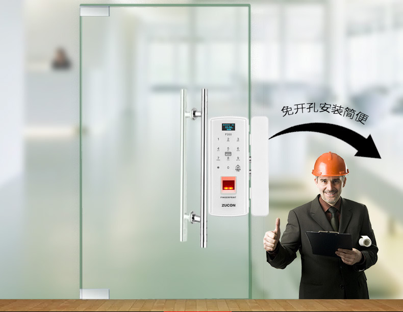 ZUCON祖程F350白色 辦公室玻璃門指紋鎖一體機免開孔門禁系統(tǒng)雙門電子鎖密碼鎖