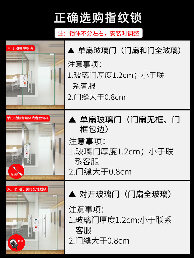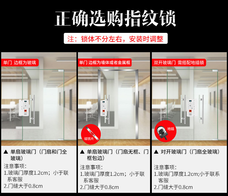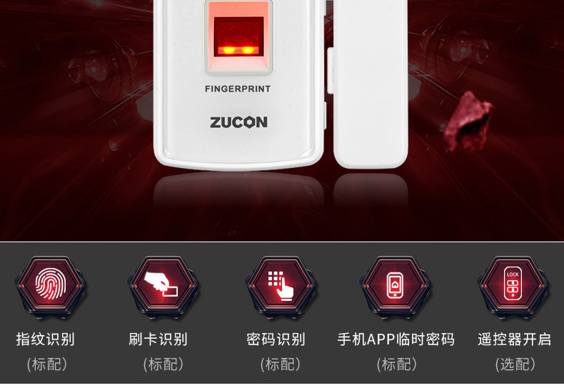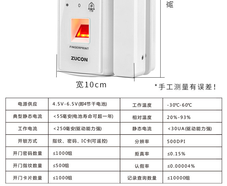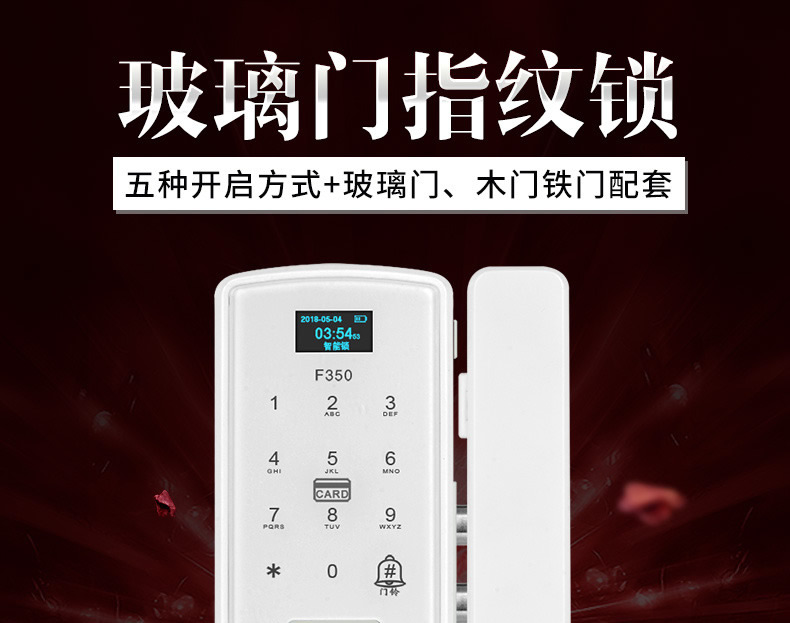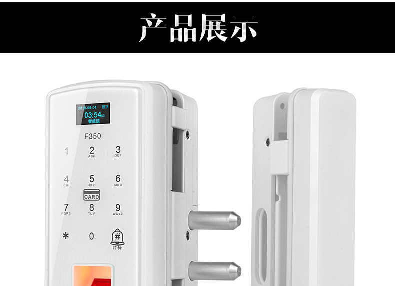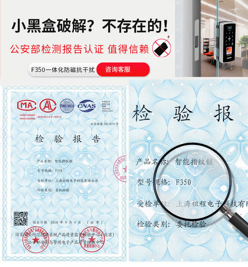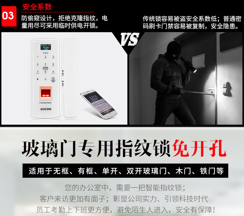 ZUCON祖程F350白色 辦公室玻璃門指紋鎖一體機免開孔門禁系統(tǒng)雙門電子鎖密碼鎖