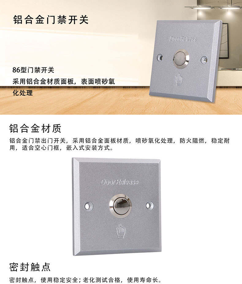 ZUCON祖程ZC-K102A 電子門禁開關(guān) 門鎖開關(guān) 出門按鈕 明裝暗裝 鋁合金