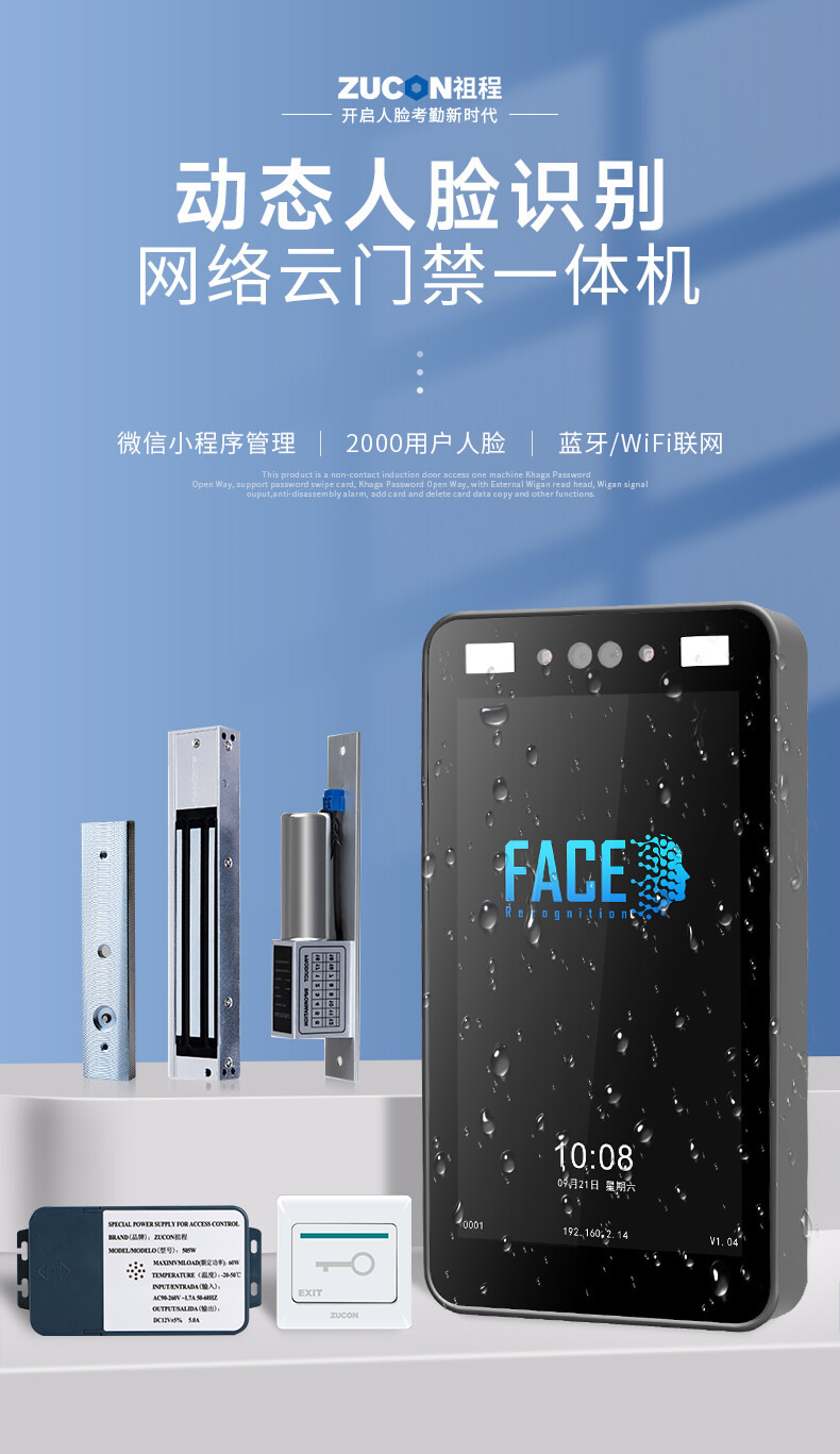 ZUCON祖程F41動態(tài)人臉識別門禁一體機(jī)辦公室玻璃門電子刷臉門禁系統(tǒng)套裝門禁鎖