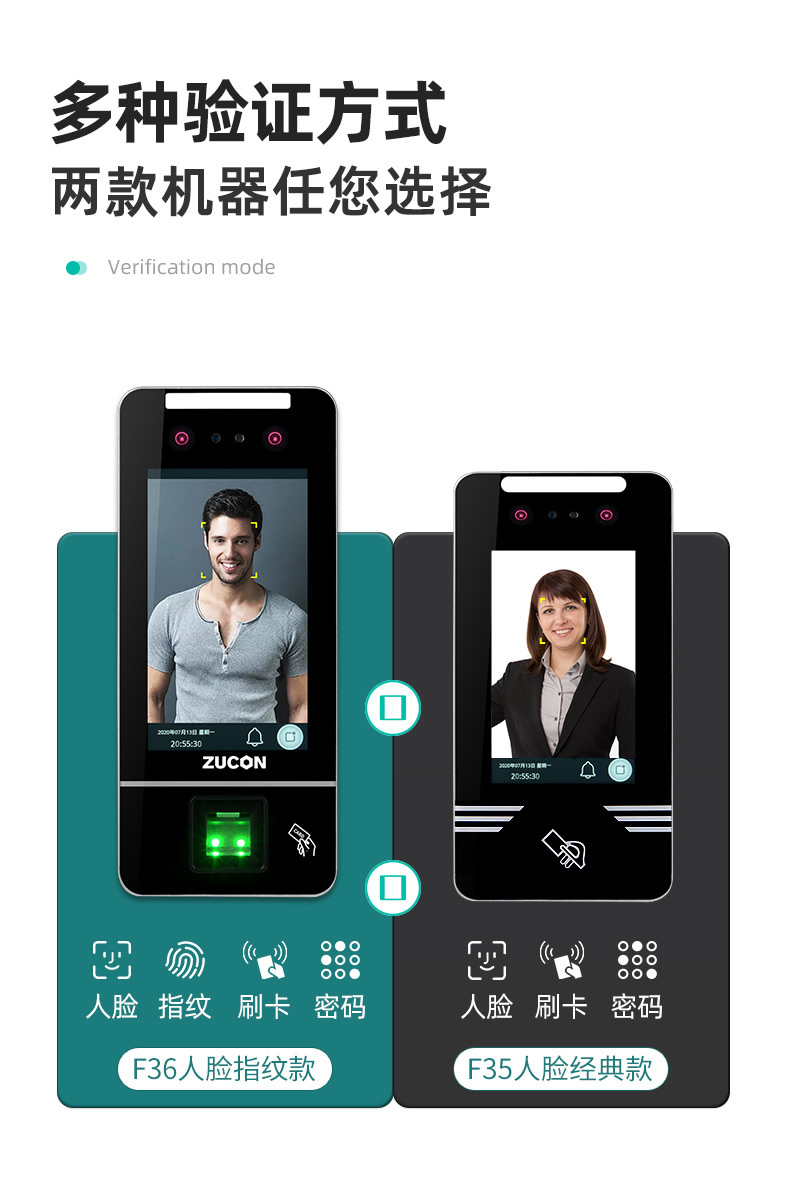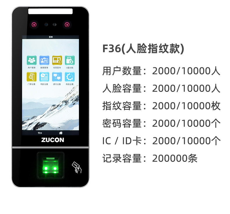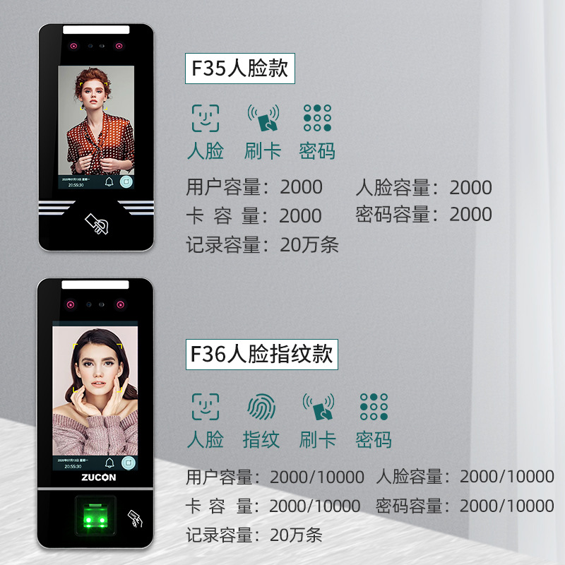 ZUCON祖程F35-F36動(dòng)態(tài)人臉識(shí)別門禁一體機(jī)刷臉門禁系統(tǒng)指紋刷卡電子門禁鎖