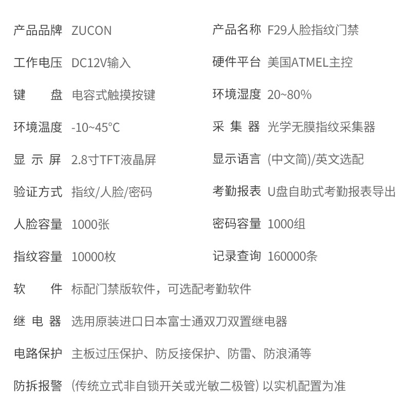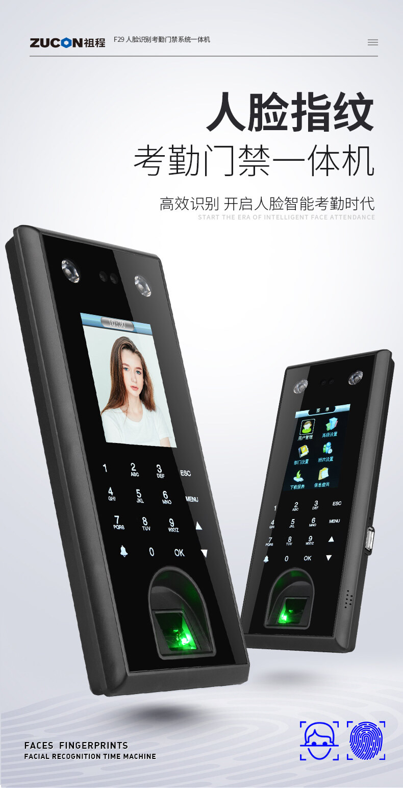 ZUCON祖程F29人臉識(shí)別門禁一體機(jī)刷臉門禁系統(tǒng)套裝電子指紋考勤門禁鎖