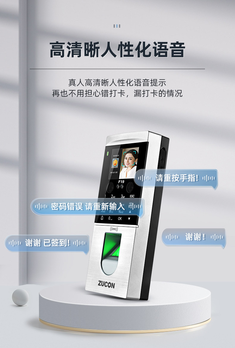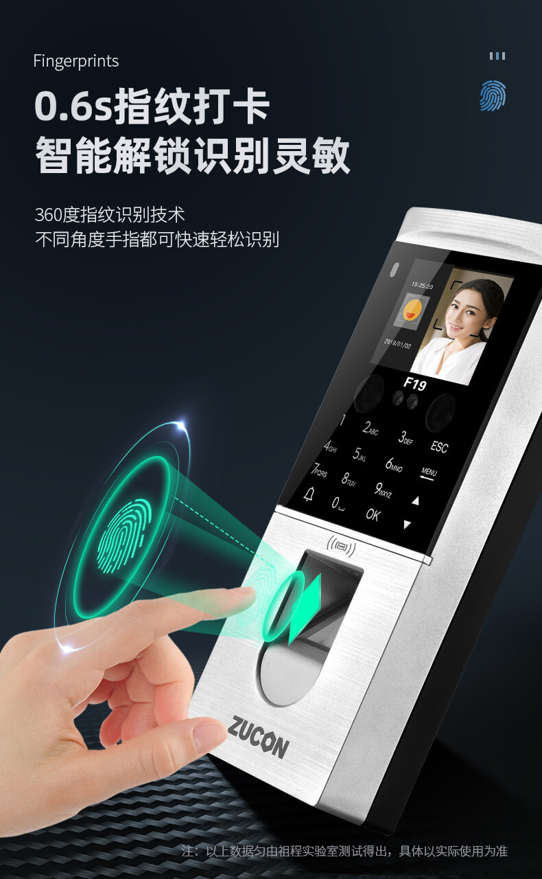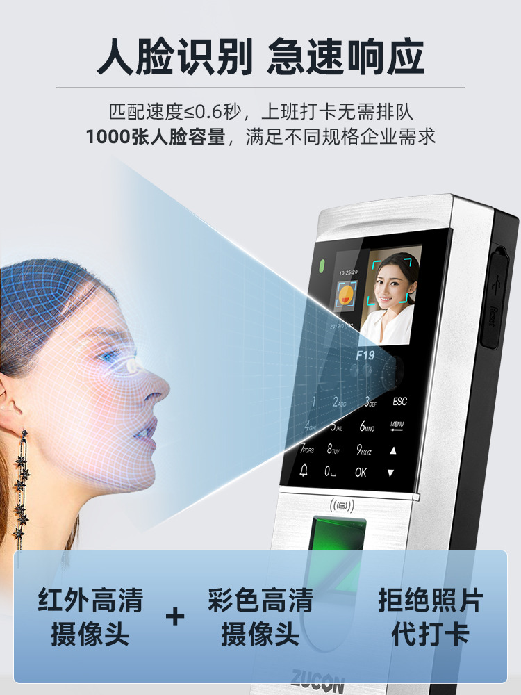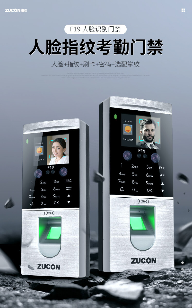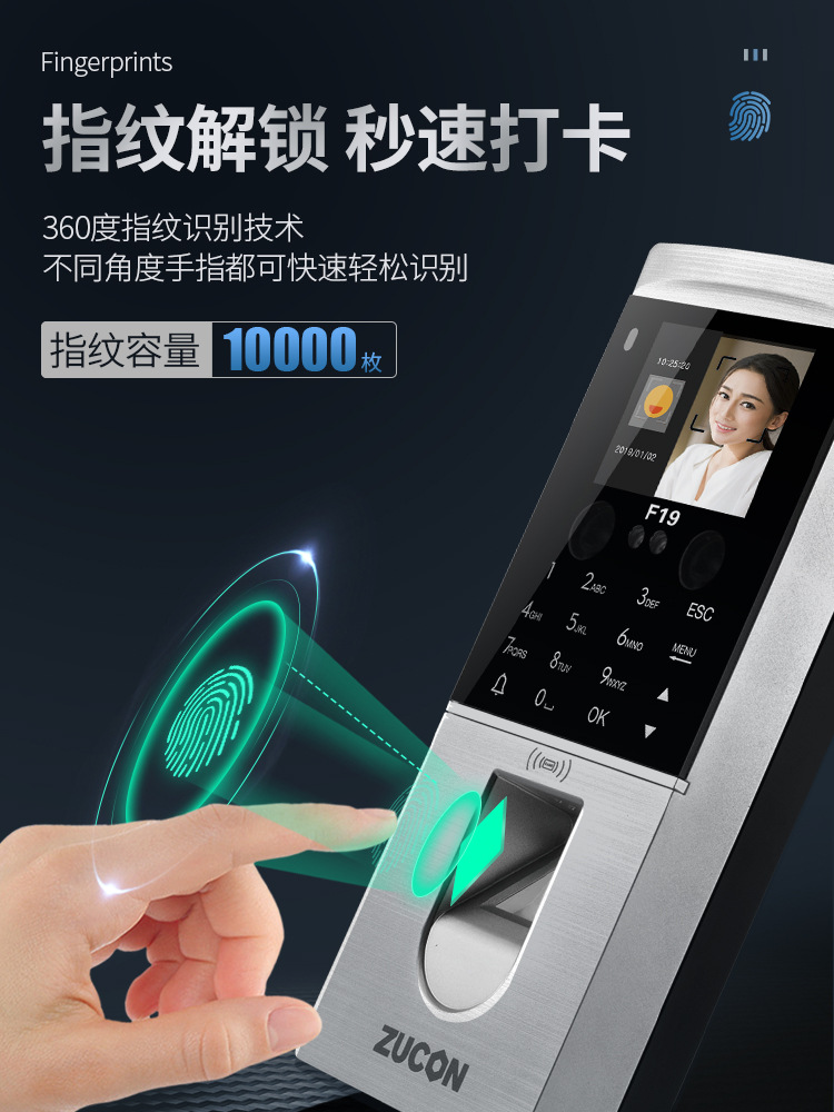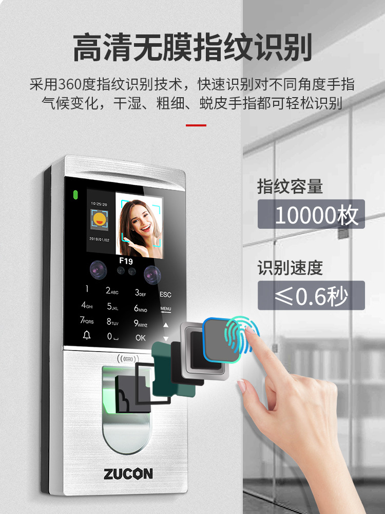 ZUCON祖程F19人臉識別門禁一體機(jī)指紋考勤刷臉門禁系統(tǒng)IDIC刷卡門禁