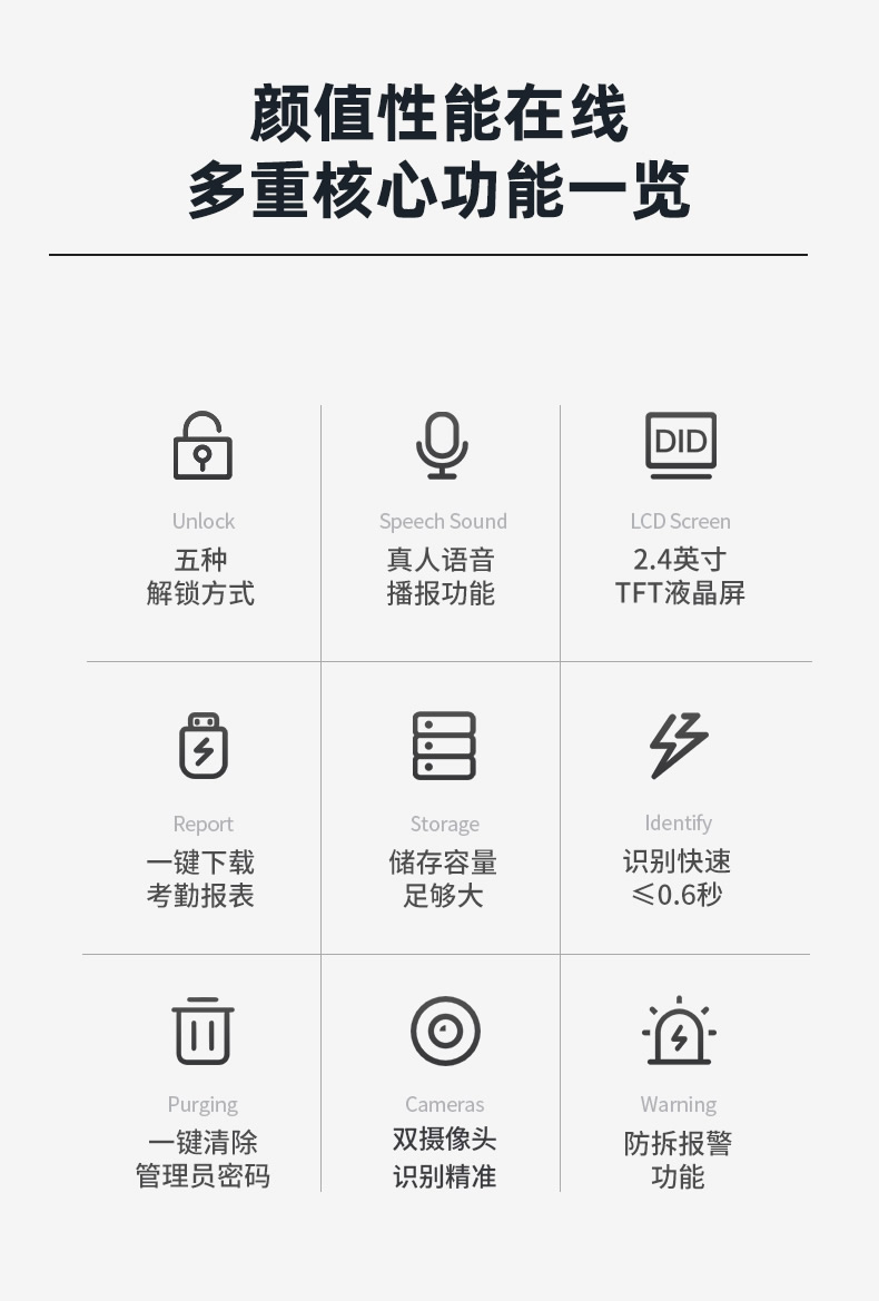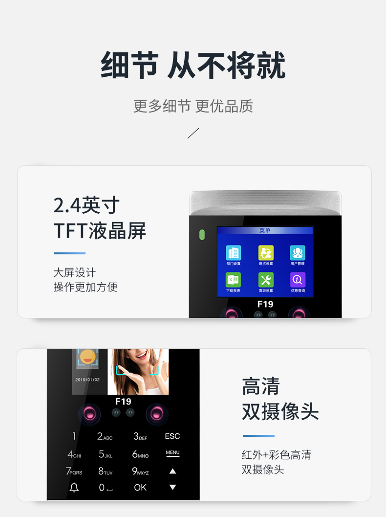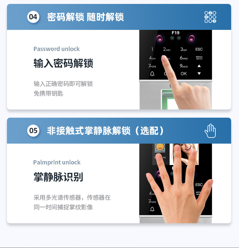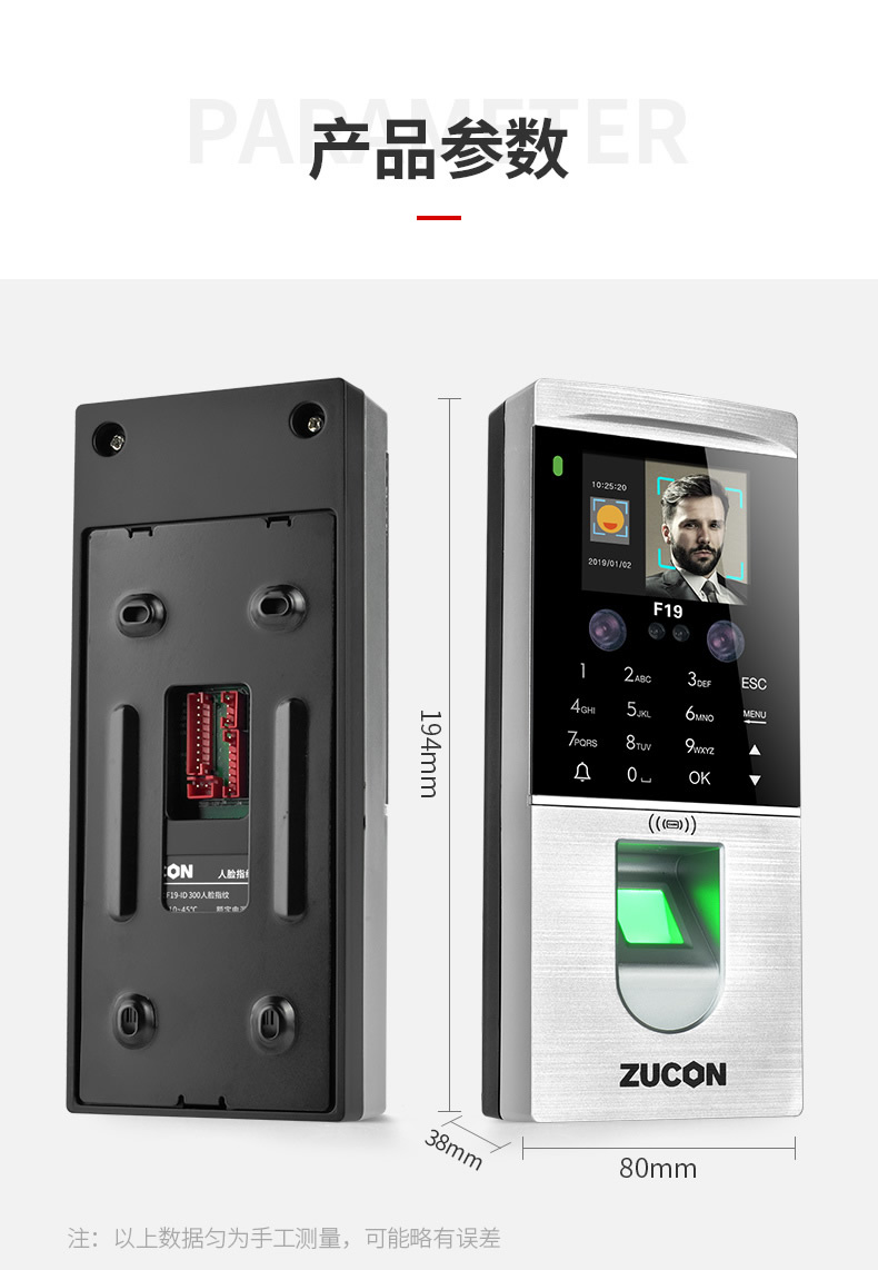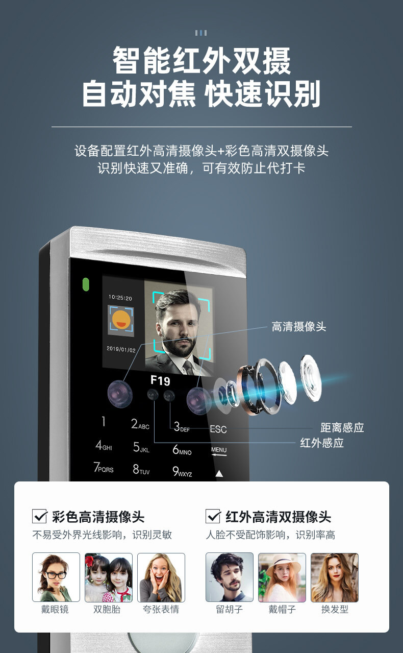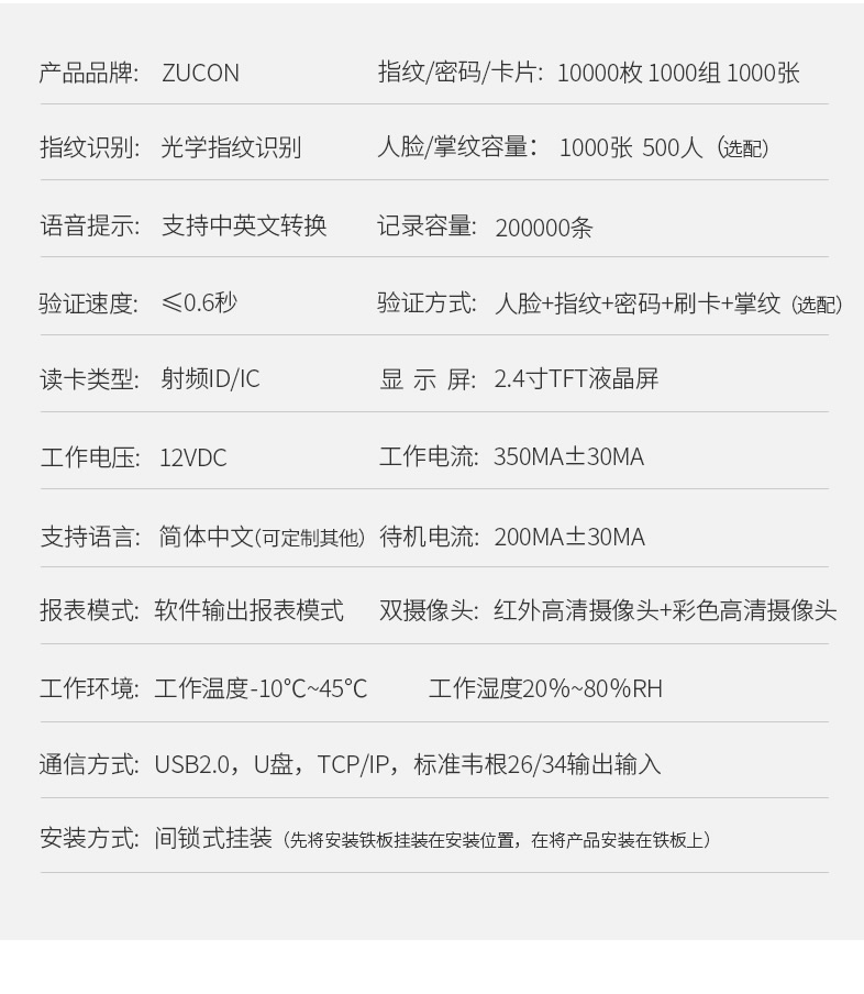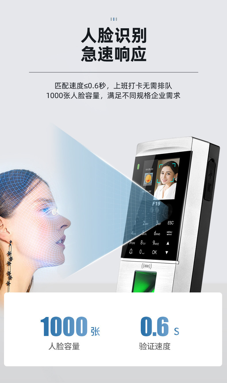 ZUCON祖程F19人臉識別門禁一體機(jī)指紋考勤刷臉門禁系統(tǒng)IDIC刷卡門禁