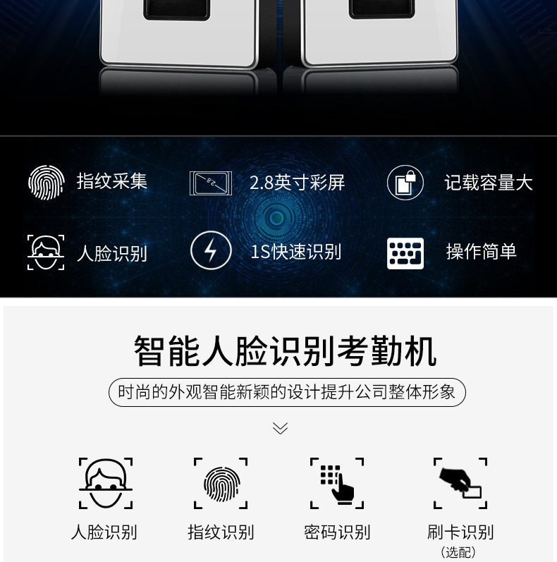 ZUCON祖程F16人臉識別門禁密碼指紋門禁考勤機指紋人臉一體機上班打卡機