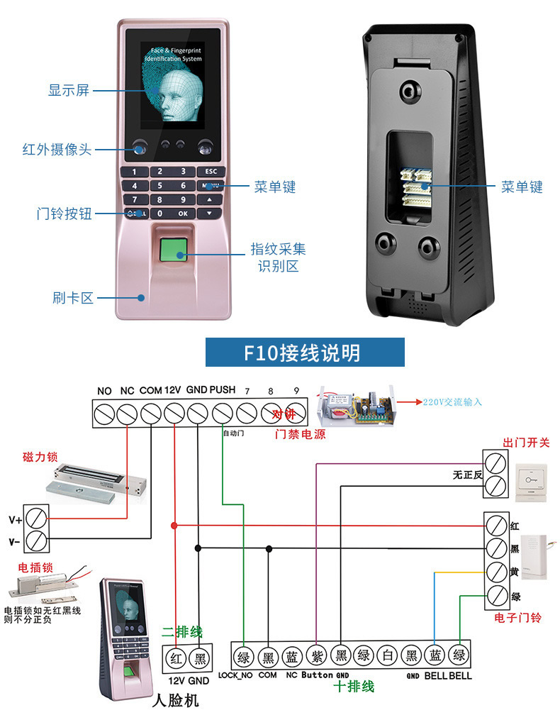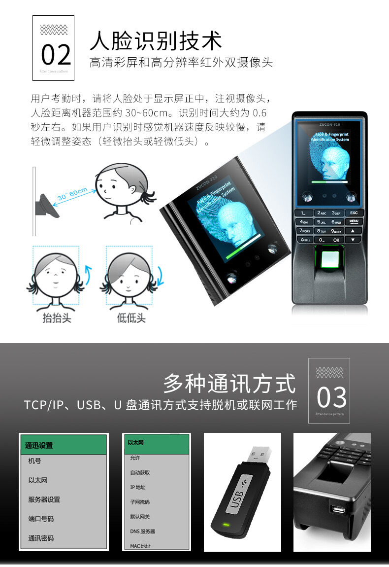 ZUCON祖程F10人臉識(shí)別考勤系統(tǒng)人臉指紋門禁系統(tǒng)指紋機(jī)刷卡器一體機(jī)