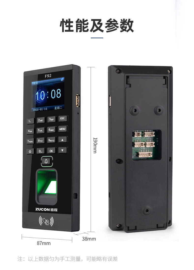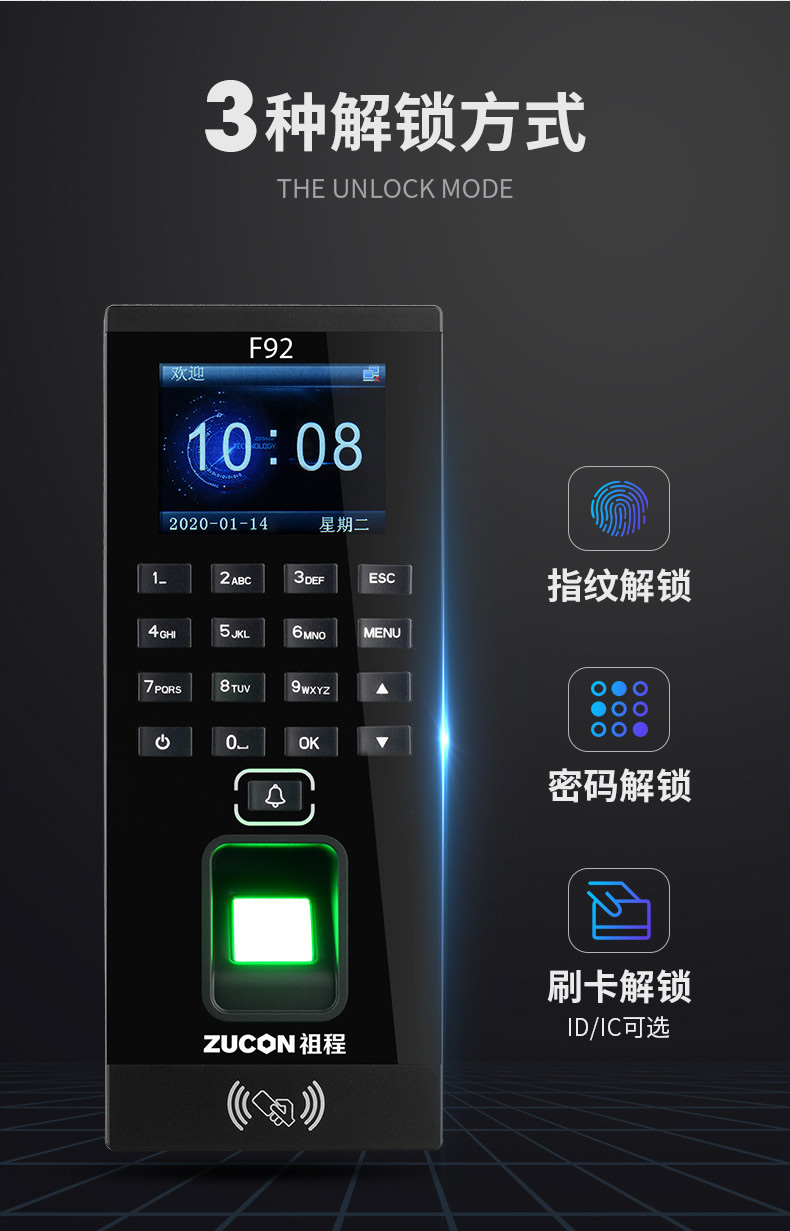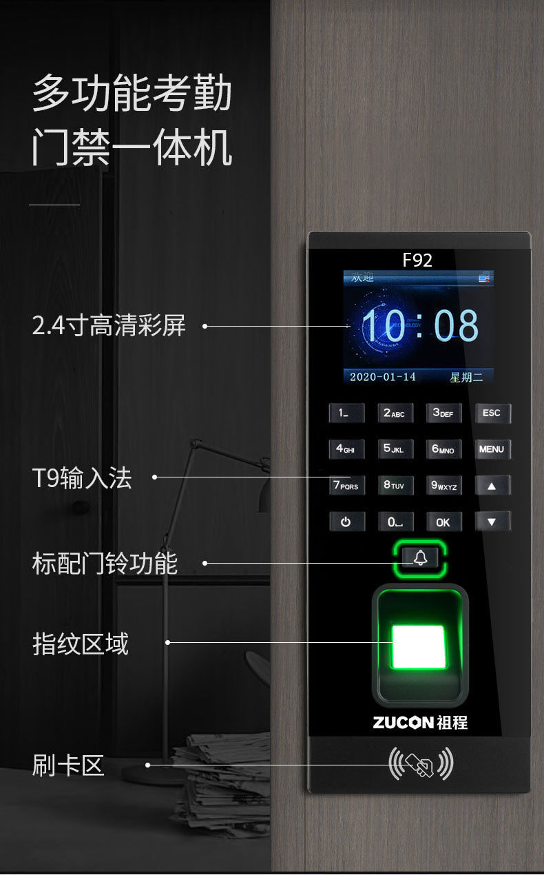 ZUCON祖程F92門禁一體機指紋刷卡密碼門禁系統(tǒng)一體機帶考勤門禁主機
