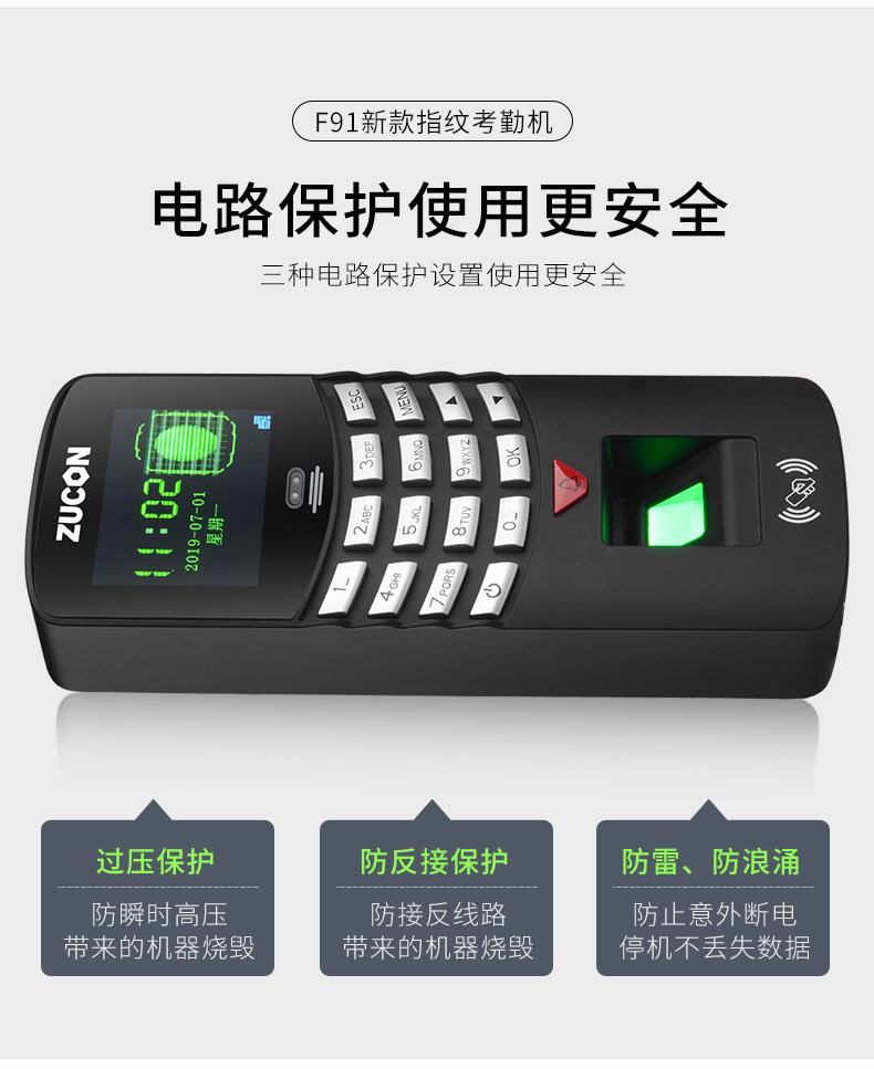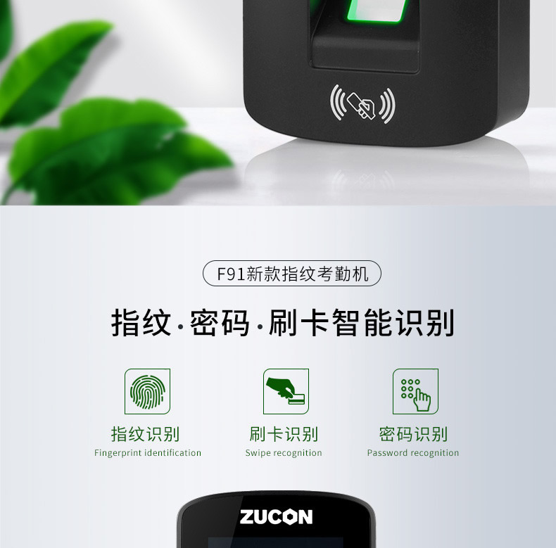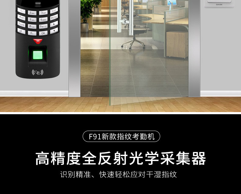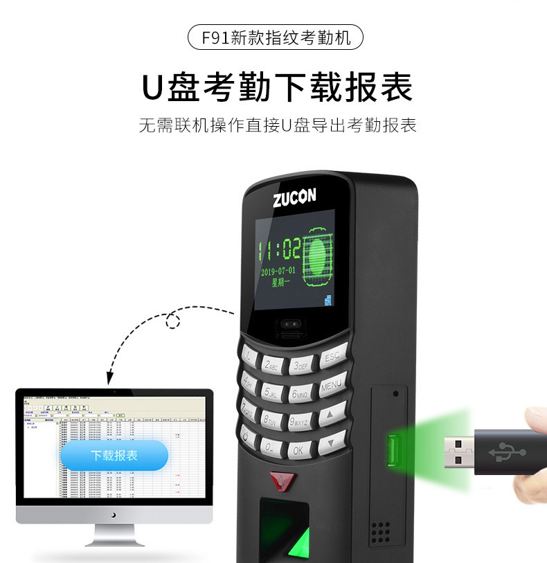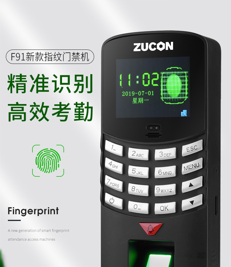 ZUCON祖程F91指紋門禁一體機(jī)辦公考勤主機(jī)網(wǎng)絡(luò)U盤下載數(shù)據(jù)3000大容量