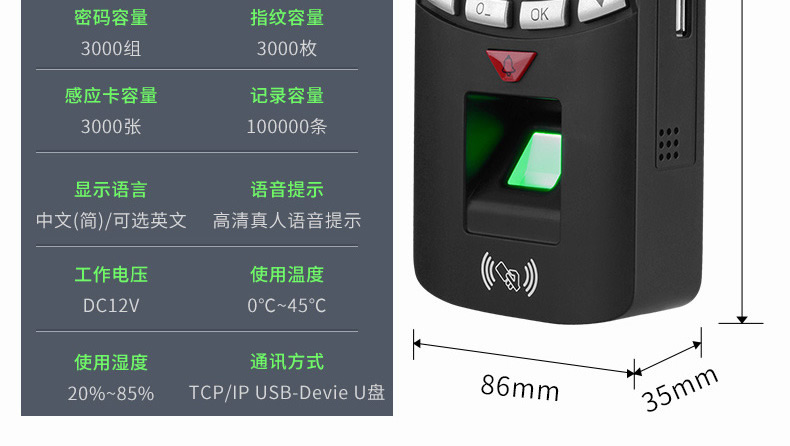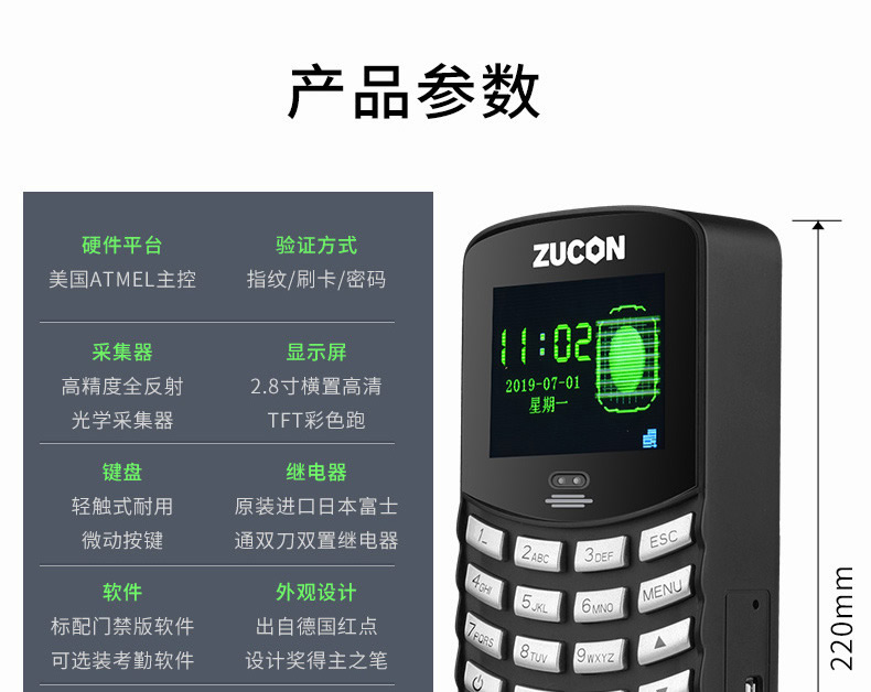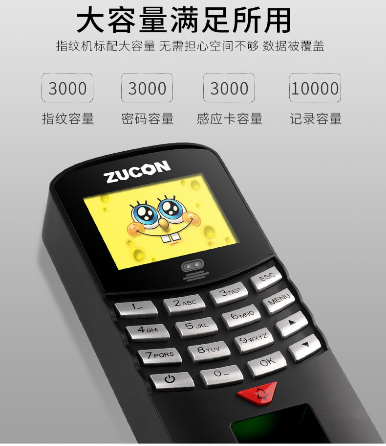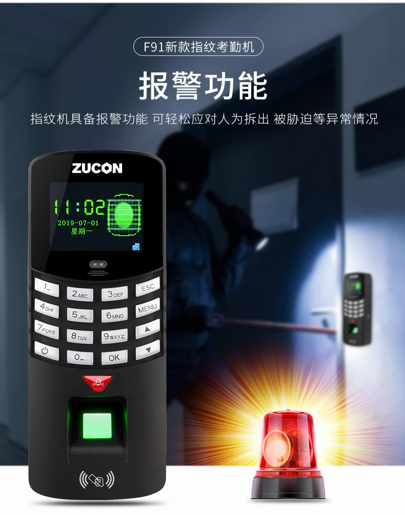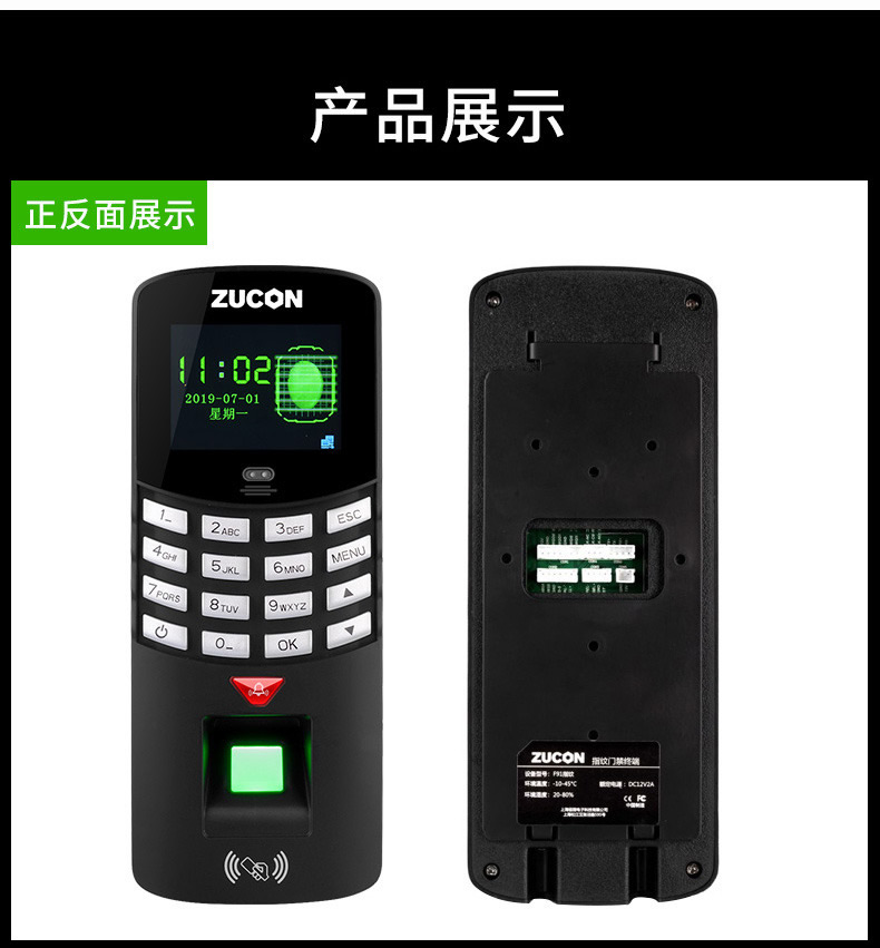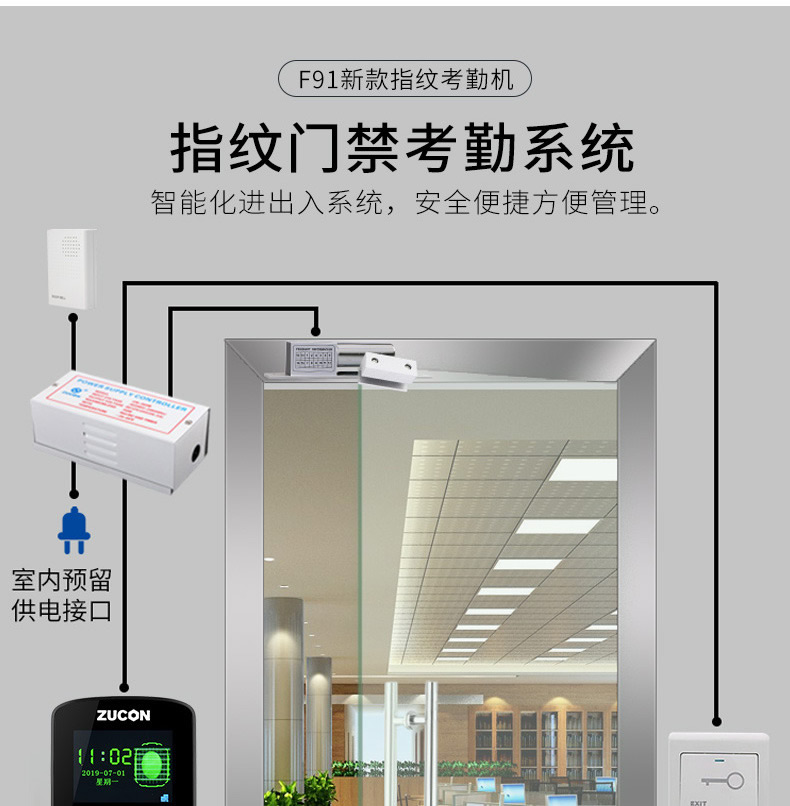 ZUCON祖程F91指紋門禁一體機(jī)辦公考勤主機(jī)網(wǎng)絡(luò)U盤下載數(shù)據(jù)3000大容量