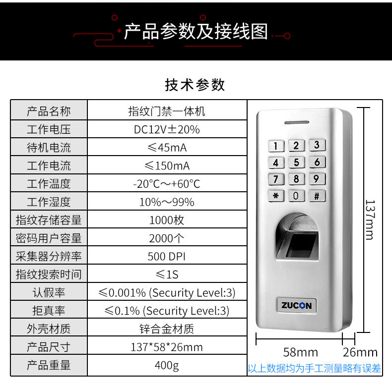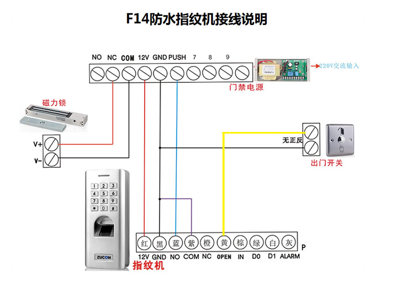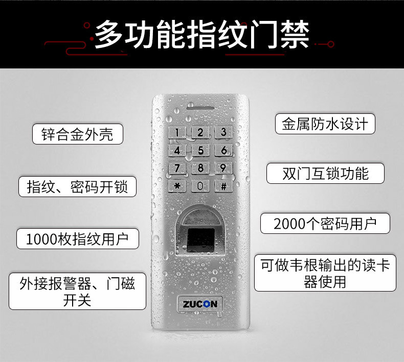 ZUCON祖程F14門禁系統(tǒng)防水指紋一體機 密碼開鎖 室外防水指紋機