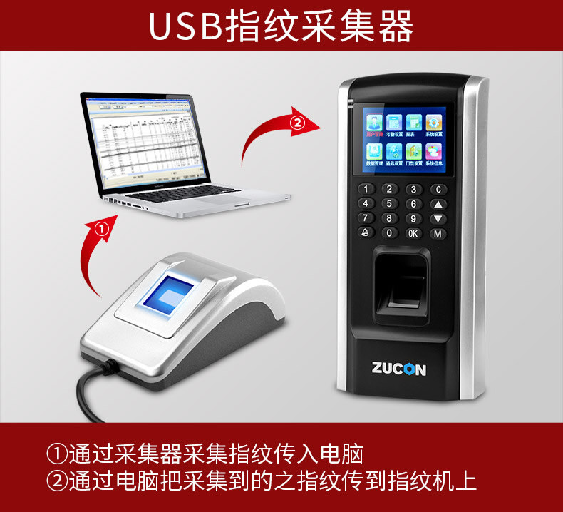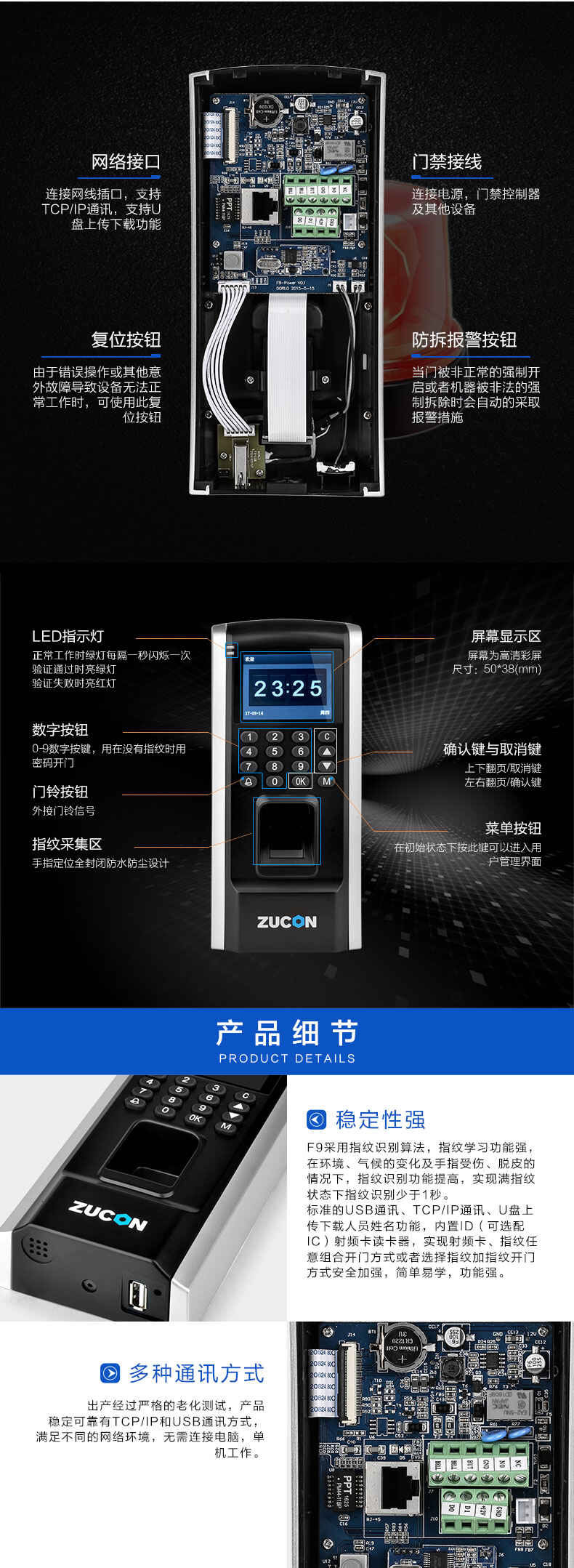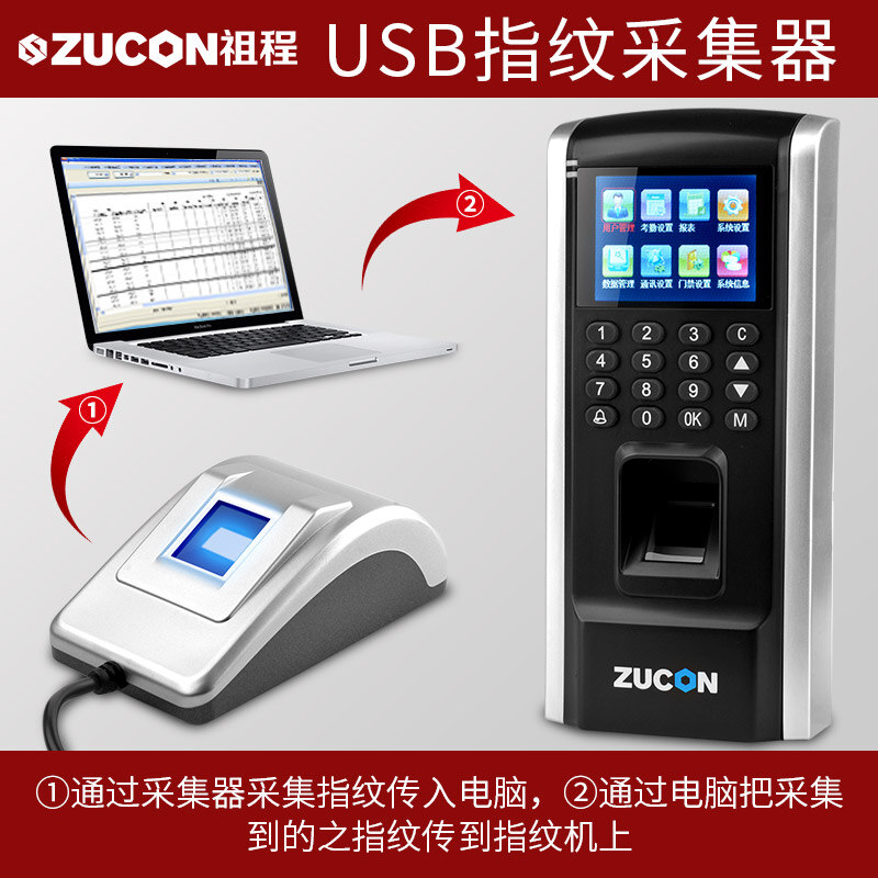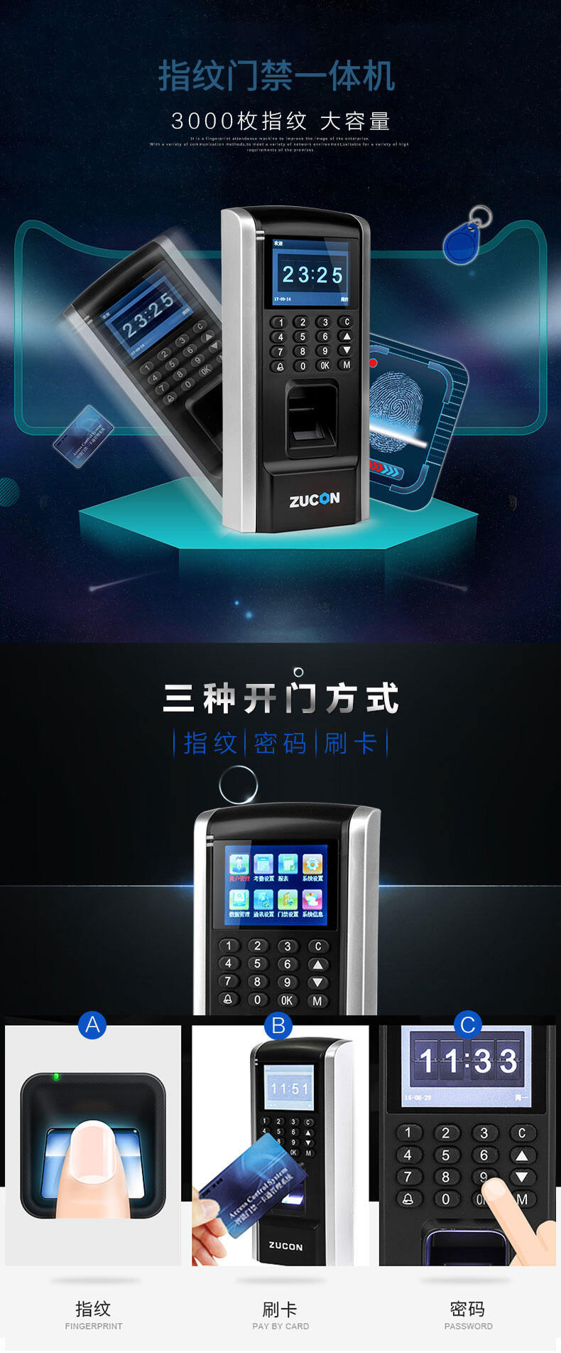 ZUCON祖程F9指紋刷卡密碼門禁考勤主機(jī)網(wǎng)絡(luò)U盤下載數(shù)據(jù)3000大容量