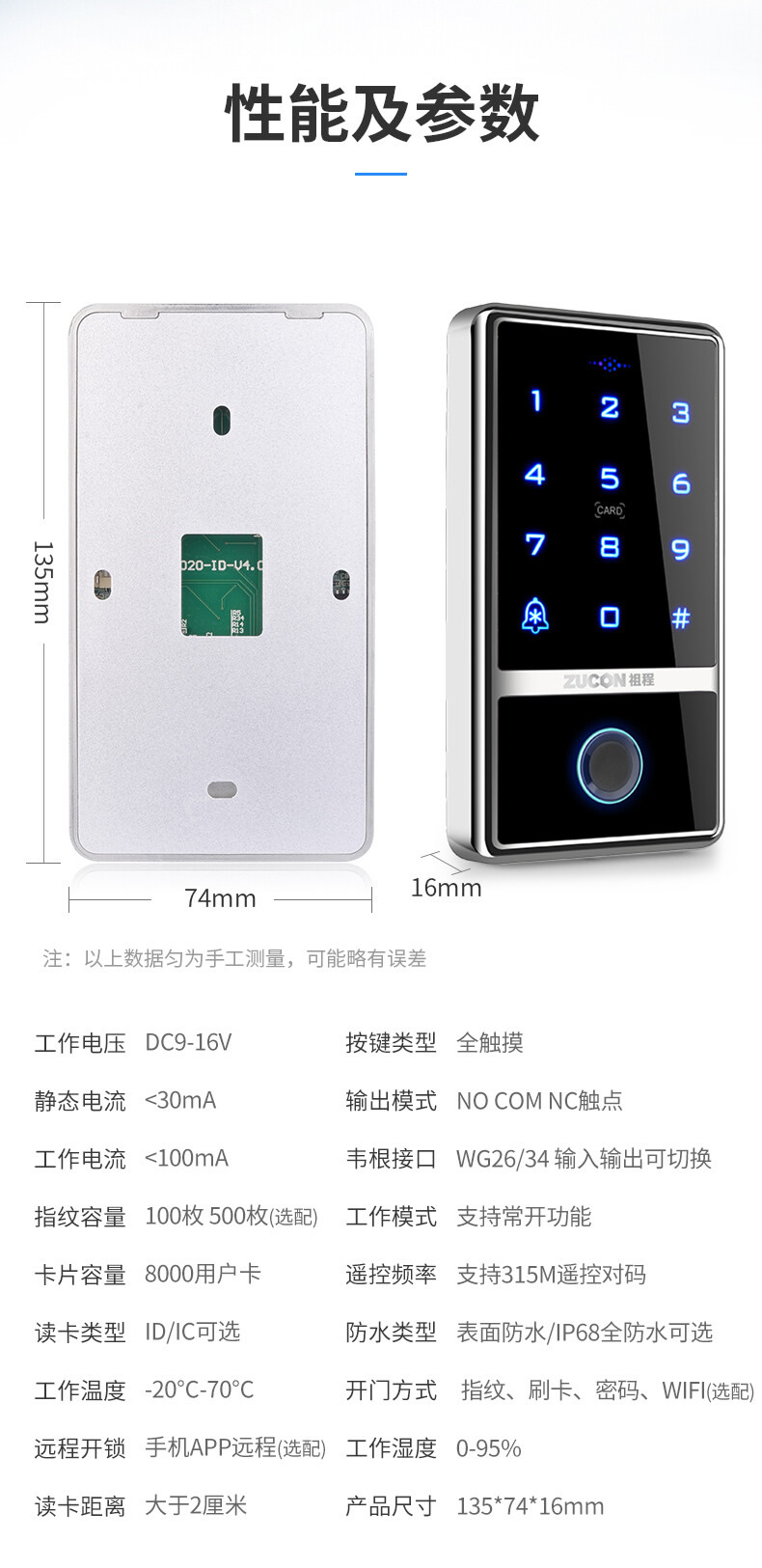 ZUCON祖程F1室外防水門禁系統(tǒng)一體機(jī)指紋刷卡讀卡器門禁主機(jī)IDIC讀頭