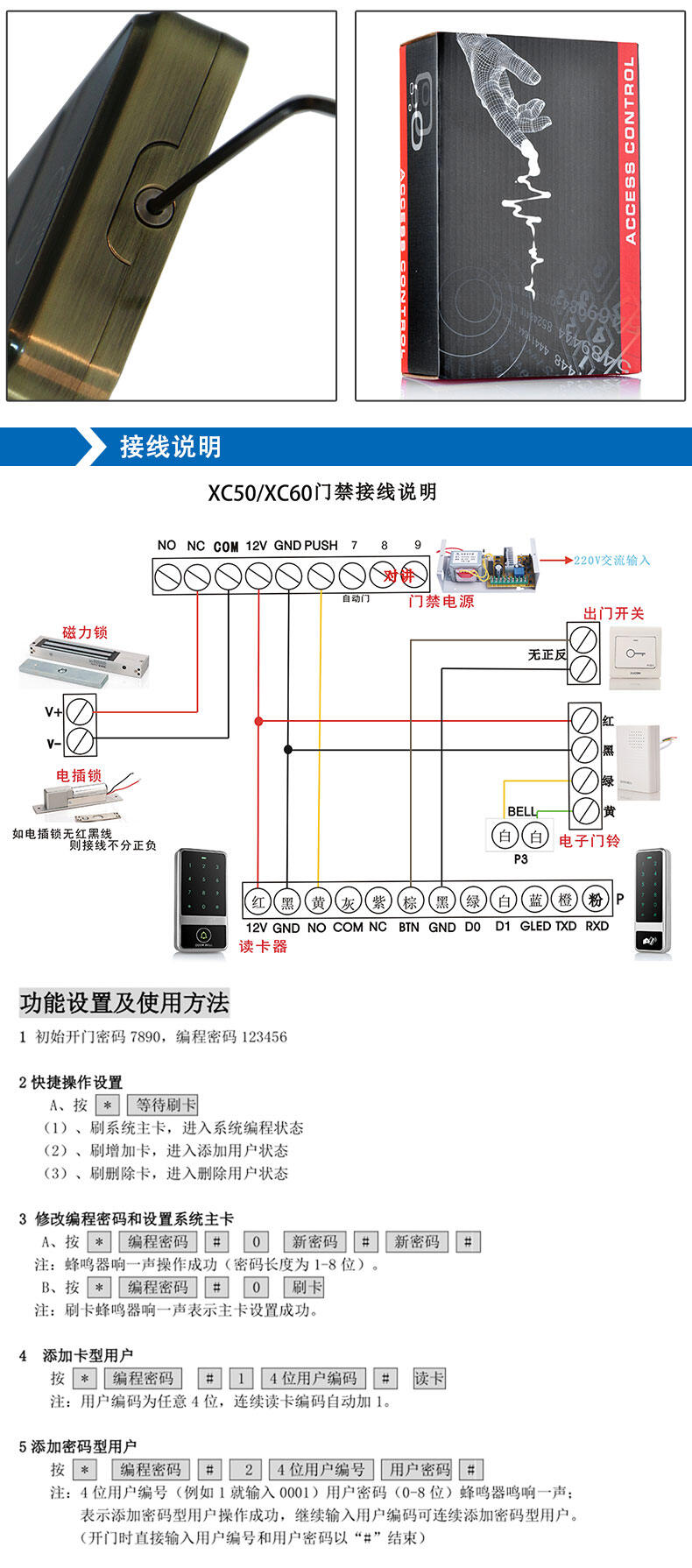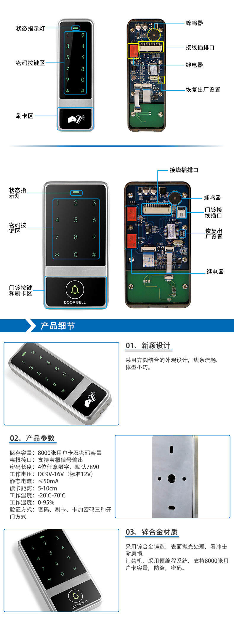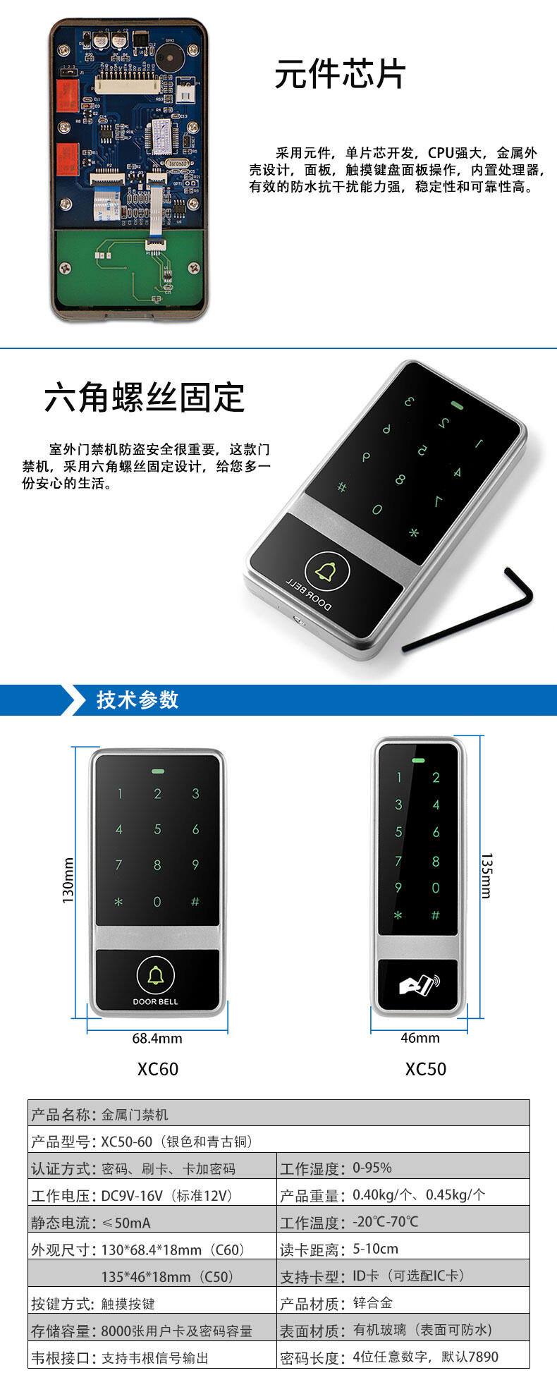 ZUCON祖程XC50 XC60 觸摸金屬門禁一體機 防砸室外防水防雨刷卡器