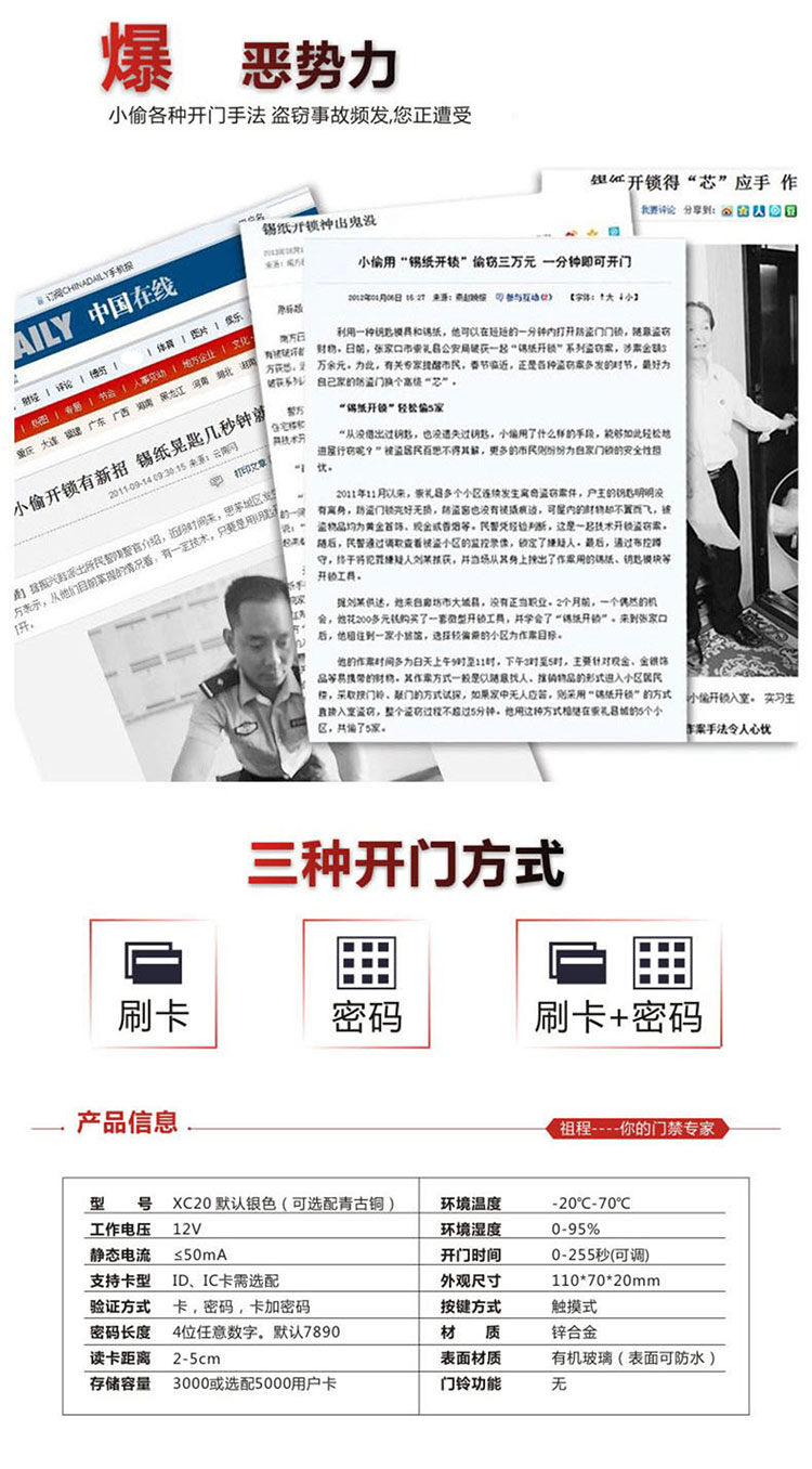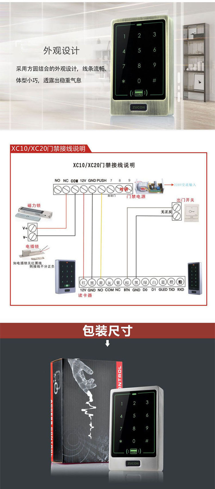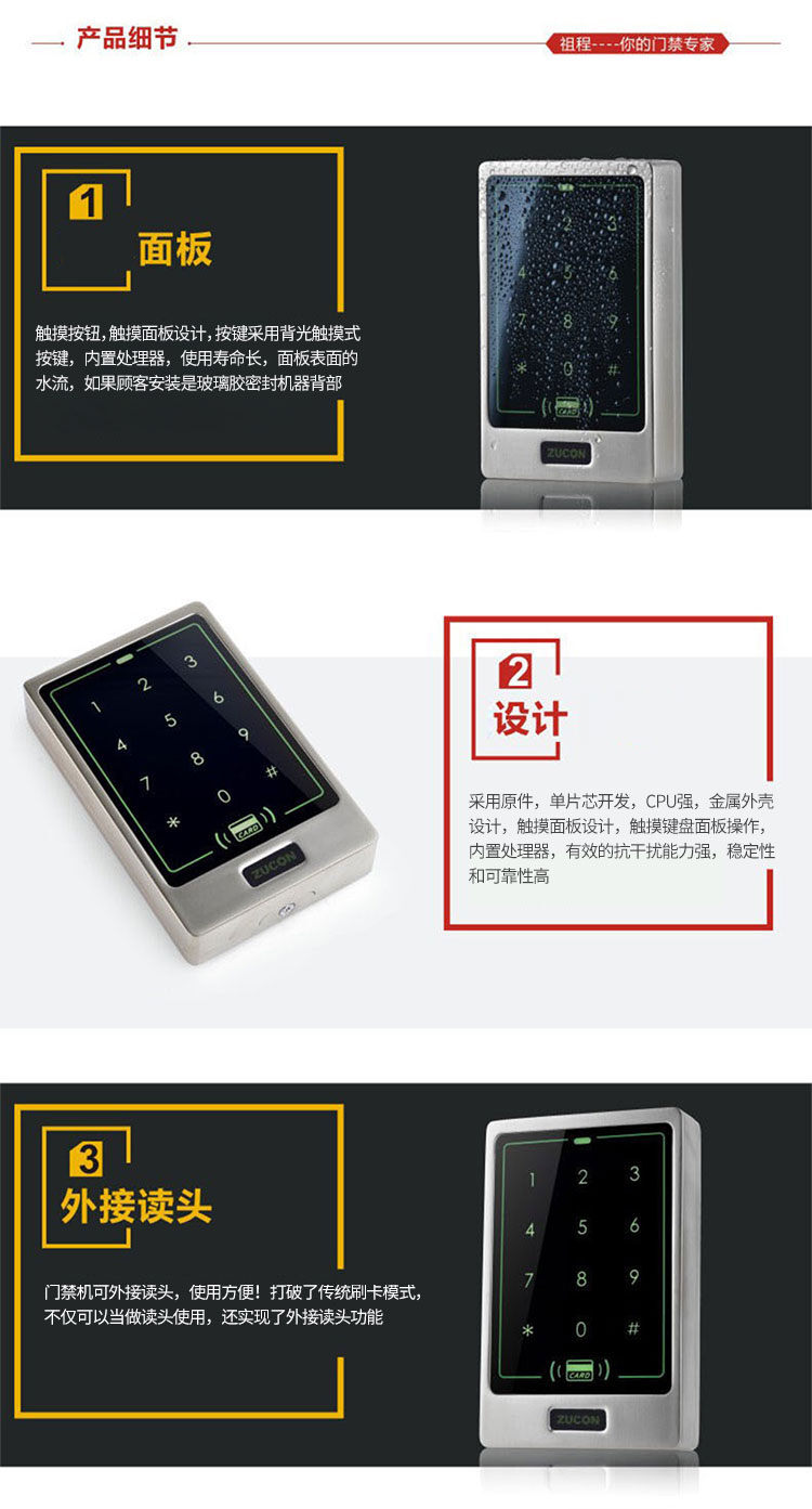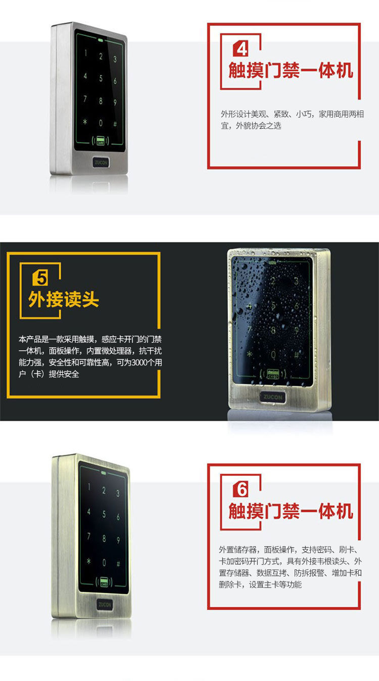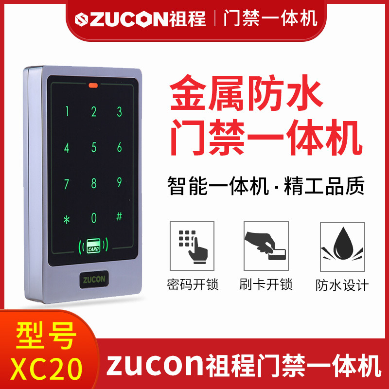 ZUCON祖程XC20金屬門禁一體機(jī)小區(qū)室外防水刷卡密碼門禁系統(tǒng)一體機(jī)