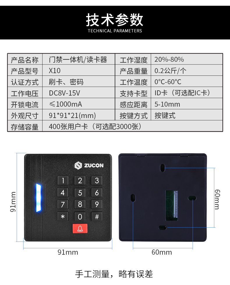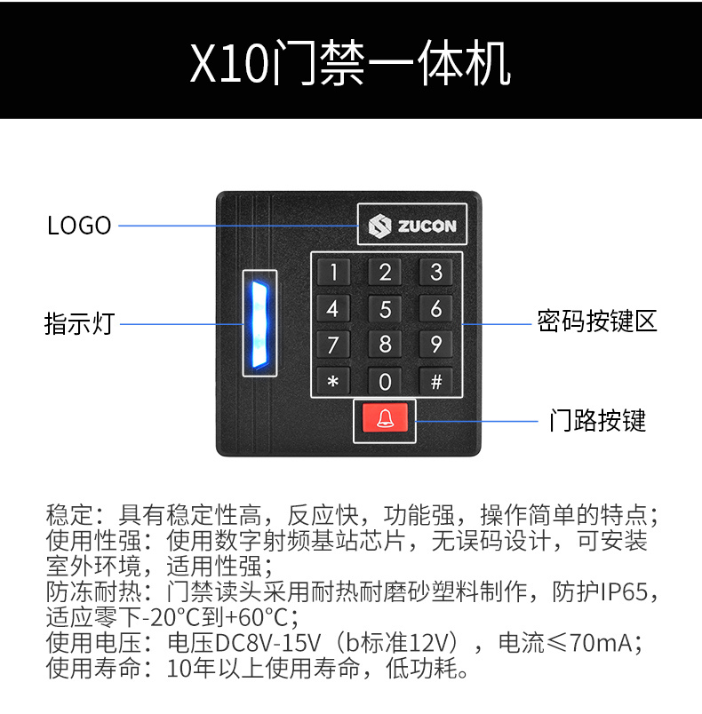 ZUCON祖程X10門禁一體機電子刷卡密碼門禁系統(tǒng)一體機玻璃門門禁刷卡器