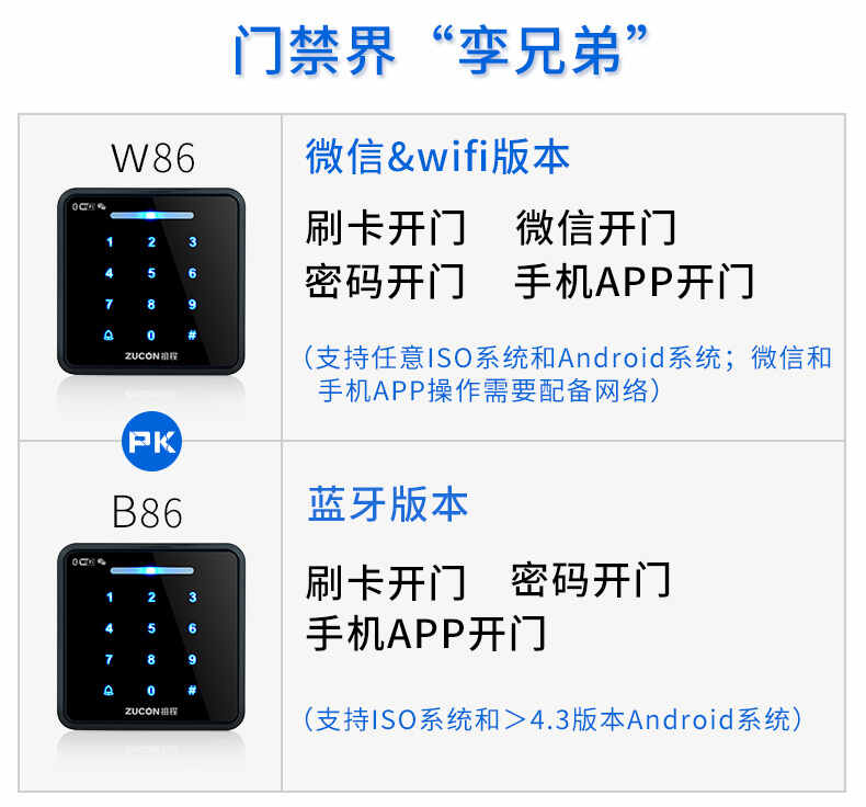 ZUCON祖程W86B86門(mén)禁一體機(jī)智能門(mén)禁手機(jī)APP刷卡密碼微信開(kāi)門(mén)門(mén)禁機(jī)